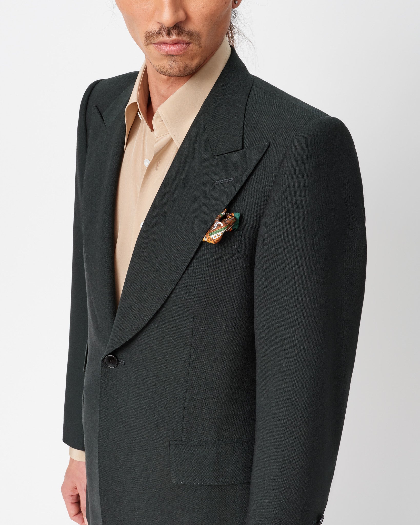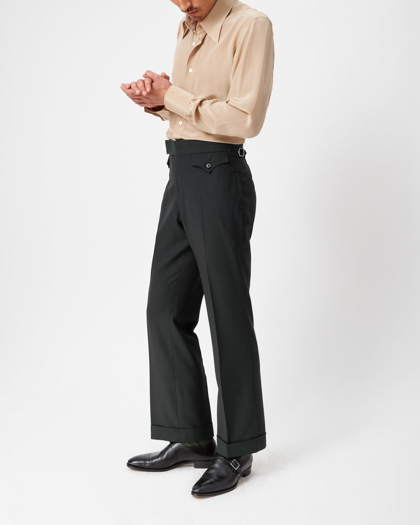 The Edward Sexton Silk Shirt is a sumptuous blend of opulence and elegance. Crafted from rich and flowing silk, these shirts feature our signature spearpoint collar, offering a touch of timeless sophistication. Our silk shirts are the epitome of evening luxury, designed to make a statement wherever you go. To truly embrace the luxurious drape and flow of silk, we encourage our clients to consider purchasing a size up from their usual fit. This ensures that the silk can move freely, enhancing both comfort and style. The Edward Sexton Silk Shirt is more than just an attire; it's a celebration of indulgence and refinement, designed to elevate your evening ensemble to new heights. Whether worn for a special occasion or to make a memorable impression, it's the epitome of luxurious elegance.