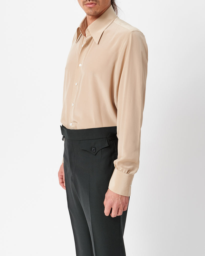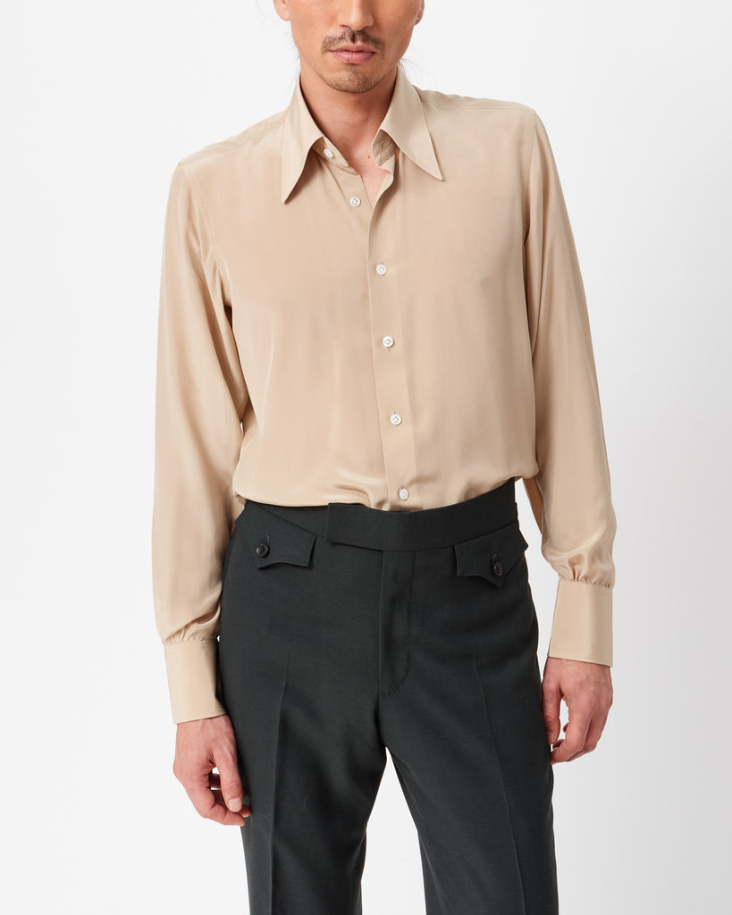 Rich and flowing, our sand silk shirt is versatile and easy to pair with much of our tailoring. With its neutral shade, it offers a mix of practicality and sophistication.