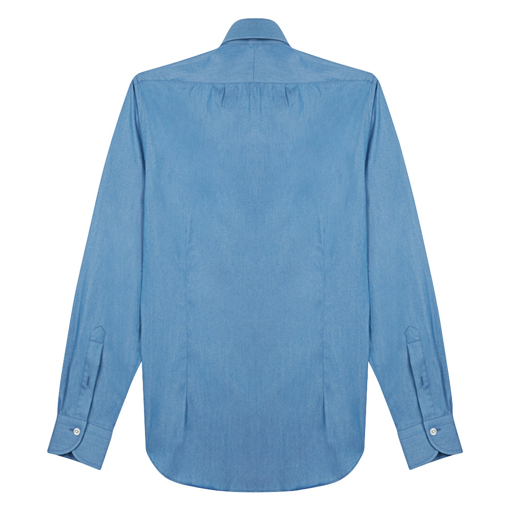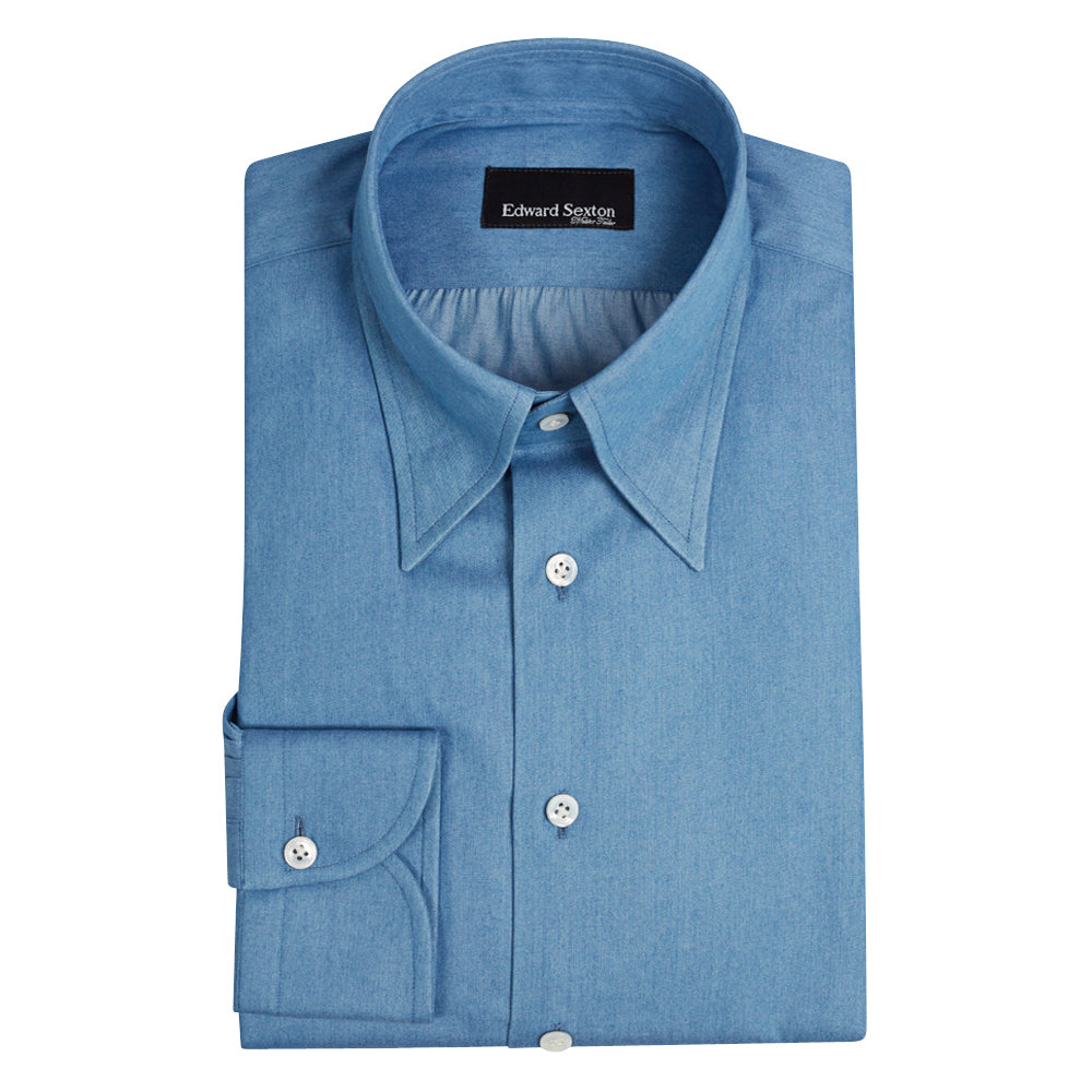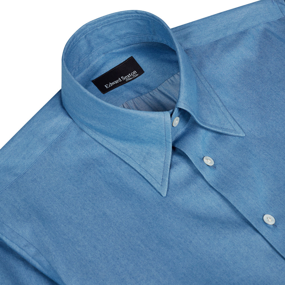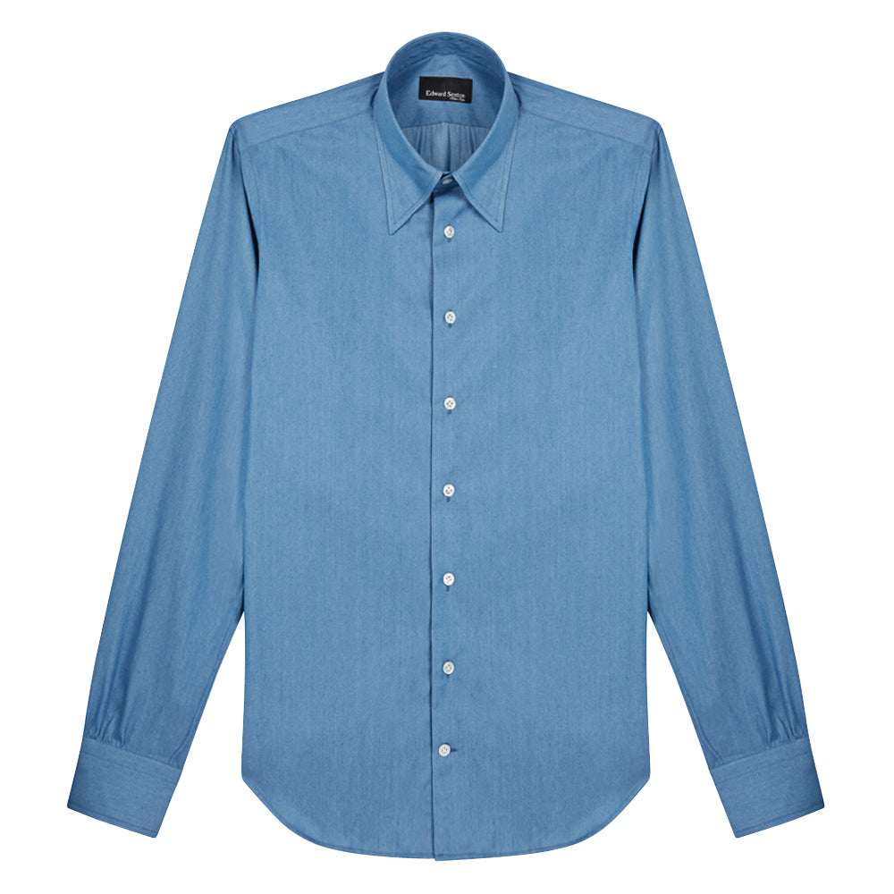 In superfine Italian denim with a mid-blue wash, this relaxed semi-formal shirt will soften and fade over time with regular wear, lending the shirt unique character. The hidden-button down collar works perfectly with a tie, or open-necked beneath a jacket. Alternatively, you can un-button the collar and spread it over your jacket's lapels for look that Mick Jagger would be proud of. Like all our shirts, it's sewn with delicate single-needle French seams, inset sleeves that sit clean around the shoulders and nine stitches per centimetre for a flawless finish. Wear with a double-breasted blazer and our wide-leg Hollywood trousers for an effortless look with just a touch of 70s swagger.