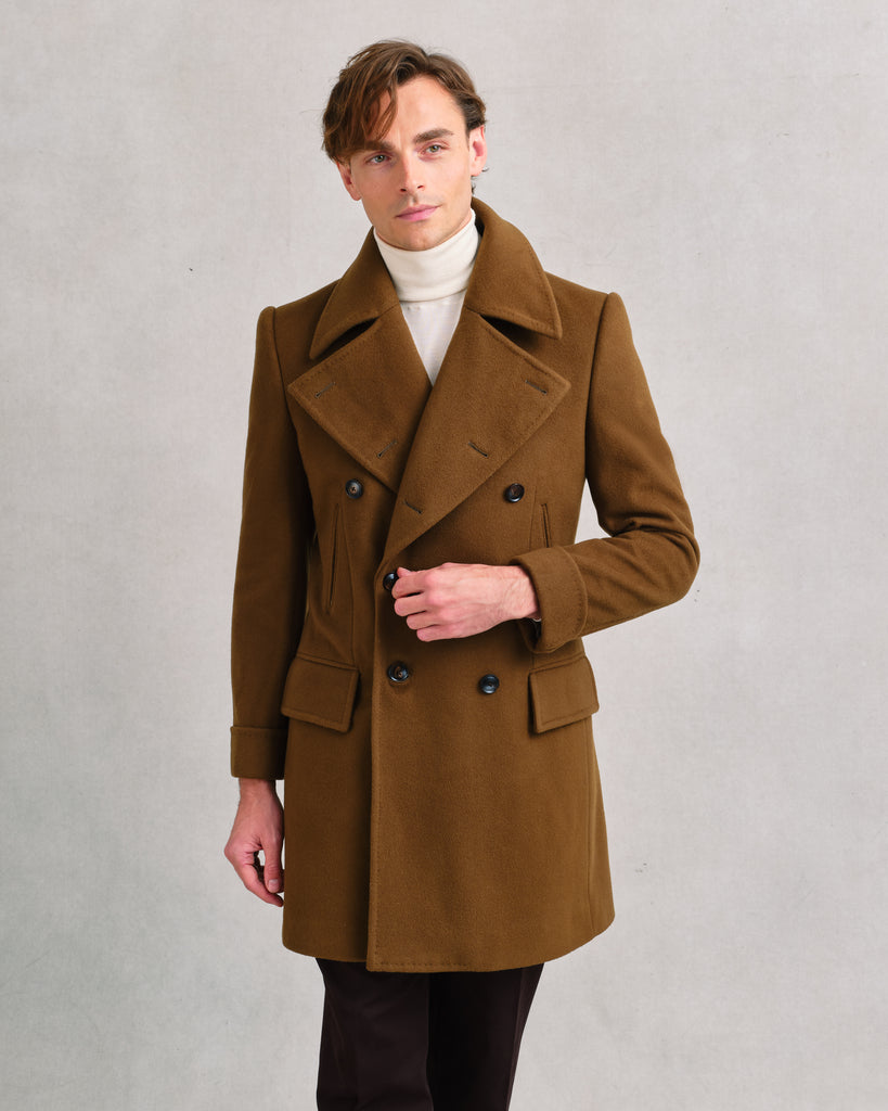 Notched lapels can look handsome too, particularly on business suits or sports jackets, which can afford to be a little more understated. We eschew slim lapels, whether peaked or notched, in favour of generous shapes that reinforce an hourglass silhouette. Adding a second button to a single-breasted jacket likewise softens its impact, but is nonetheless extremely elegant and can help to balance the slightly shorter, squarer proportions of notched lapels.