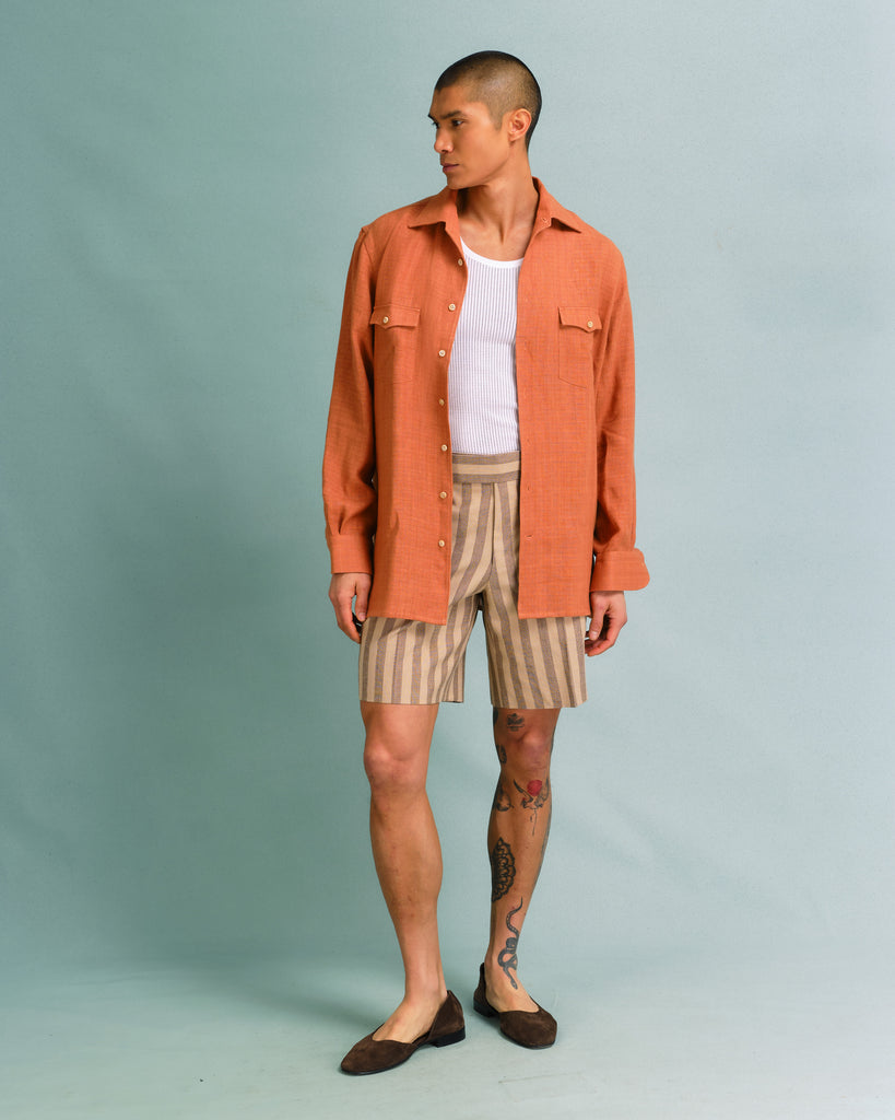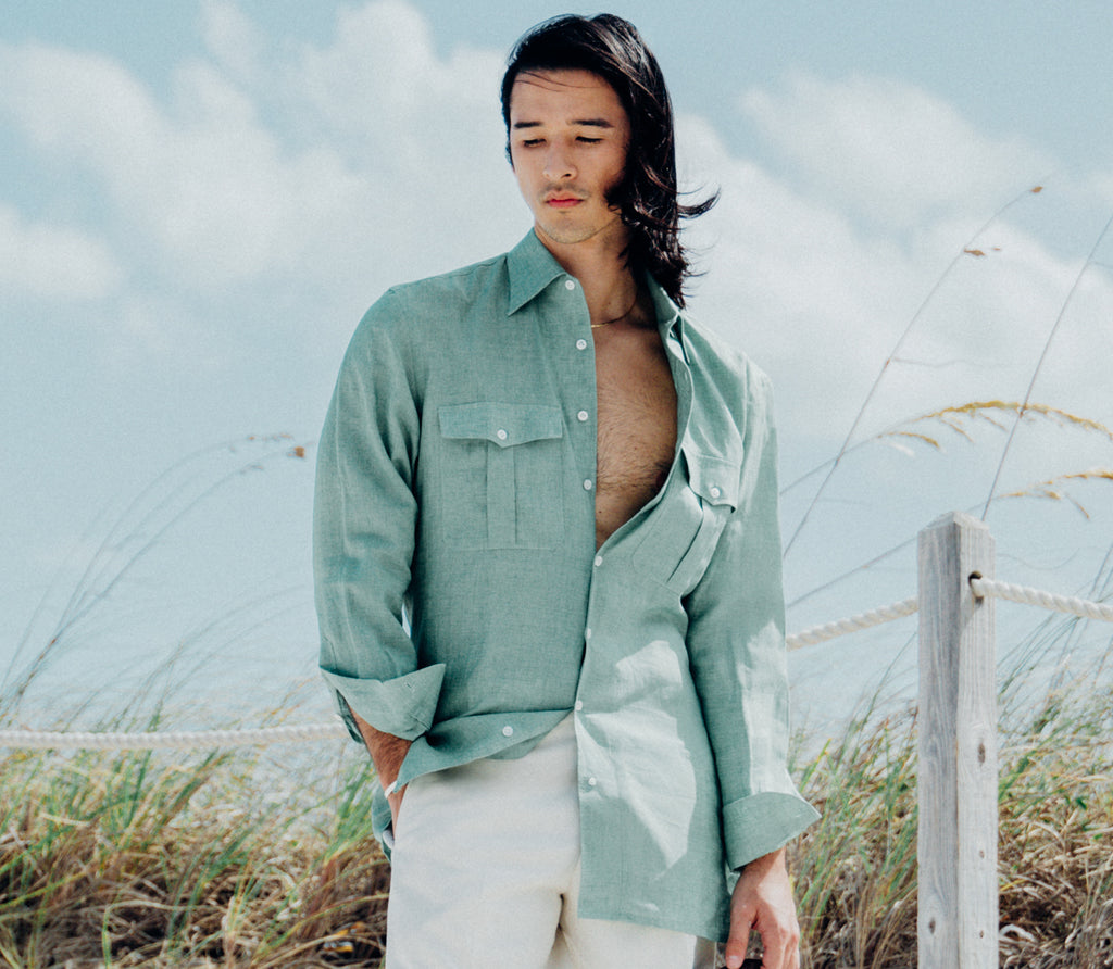 Our casual shirts include soft brushed cottons, safari shirts, and our indispensable hidden-button down shirt in a range of chambrays, jerseys and other refined materials. If you’re looking for a shirt to wear with Hollywood trousers on the weekends, you’ll find it here.