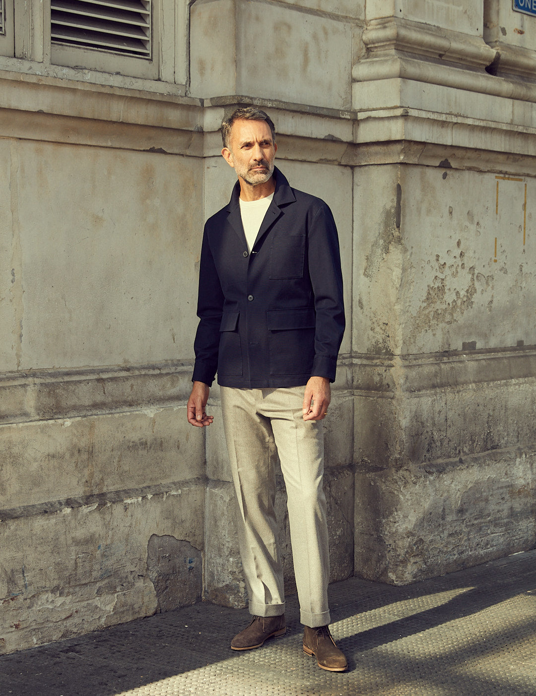 Beautifully constructed and well proportioned, the Edward Sexton chore jacket finds it roots in workwear, with 3 external and three internal pockets it is both practical and versatile. This overshirt is unstructured but has a little lining on the back and in the sleeves helping maintain the body. The chore jacket is not overly shaped and can be worn with matching trousers or as a separate. Edward sexton chore jackets can be made to measure in your choice of fabric contact if you want something made for you.