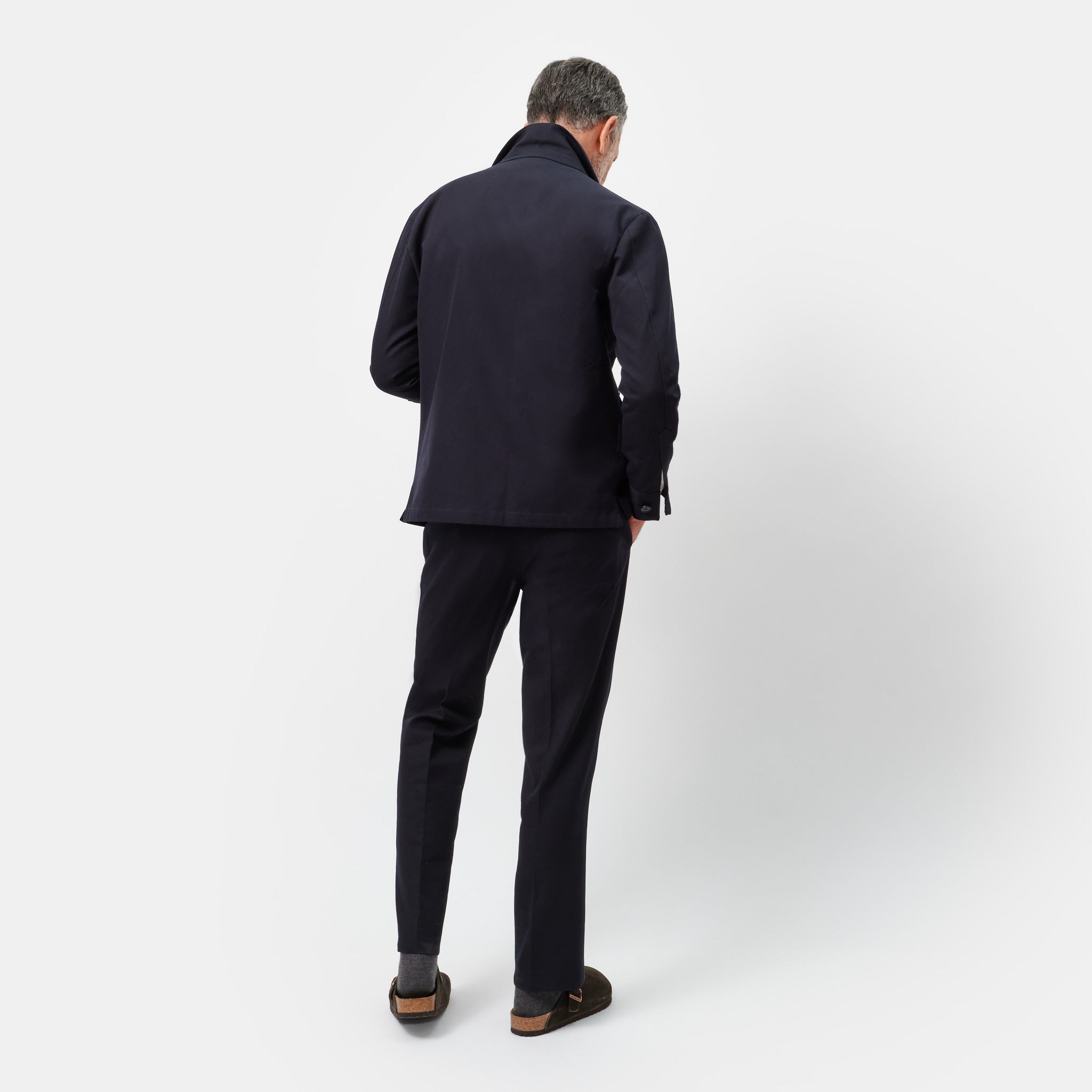 The Midnight Cotton Canvas Chore suit by Edward Sexton embraces both style and utility. It's durable cotton canvas fabric ensures it stands up to the demands of everyday life. This jacket effortlessly combines with matching trousers to create a classic suit, perfect for various occasions.