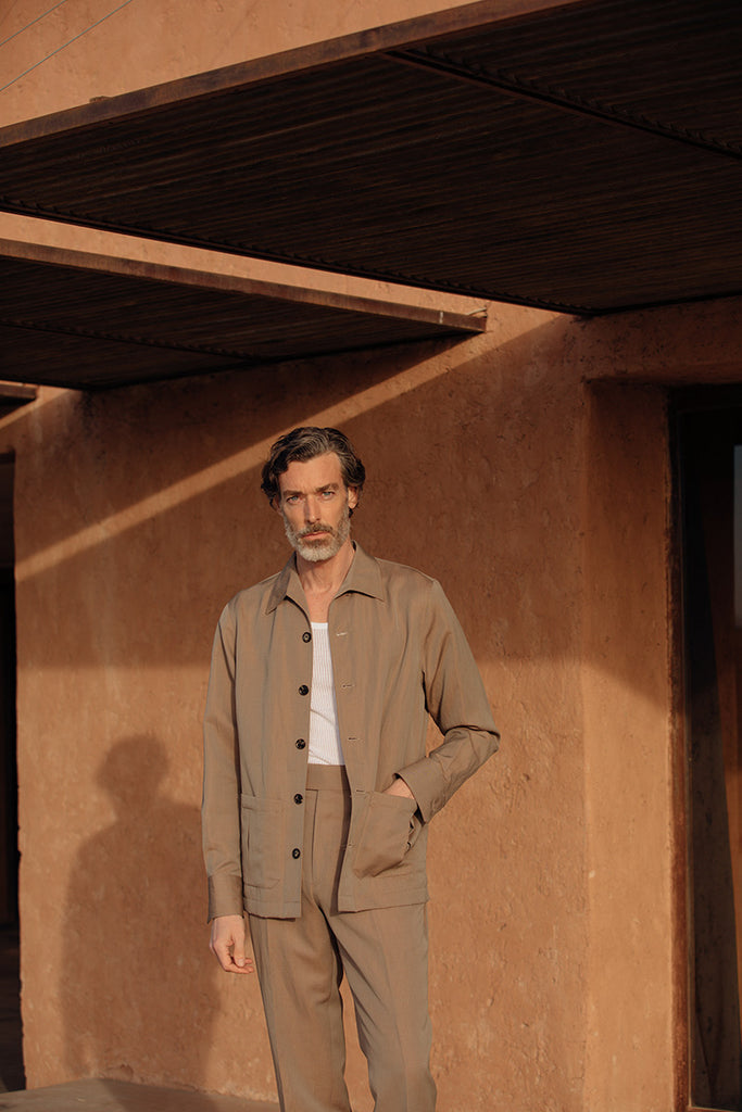 Neutral earthy tones make it effortless to mix and match with denim, wool or cotton jackets and trousers - perfect for summer events or just for looking cool in a pub garden this summer. With its rich sepia tone and soft peached finish, this flowing wool is full of a character and depth.