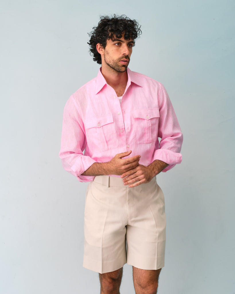 We designed our over-shirts as the ideal weekend layering piece • easy to style over a roll-neck or knitted T-shirt and a pair of our Hollywood or House trousers. With Cuban collars, delicate topstitching and a straight fit through the side seams, they're both elegant and easy-wearing.