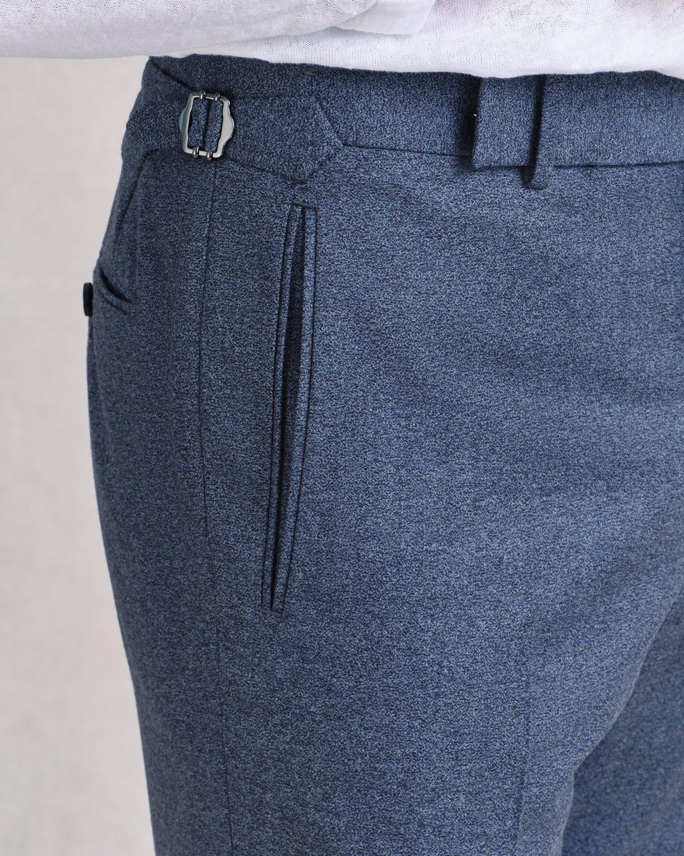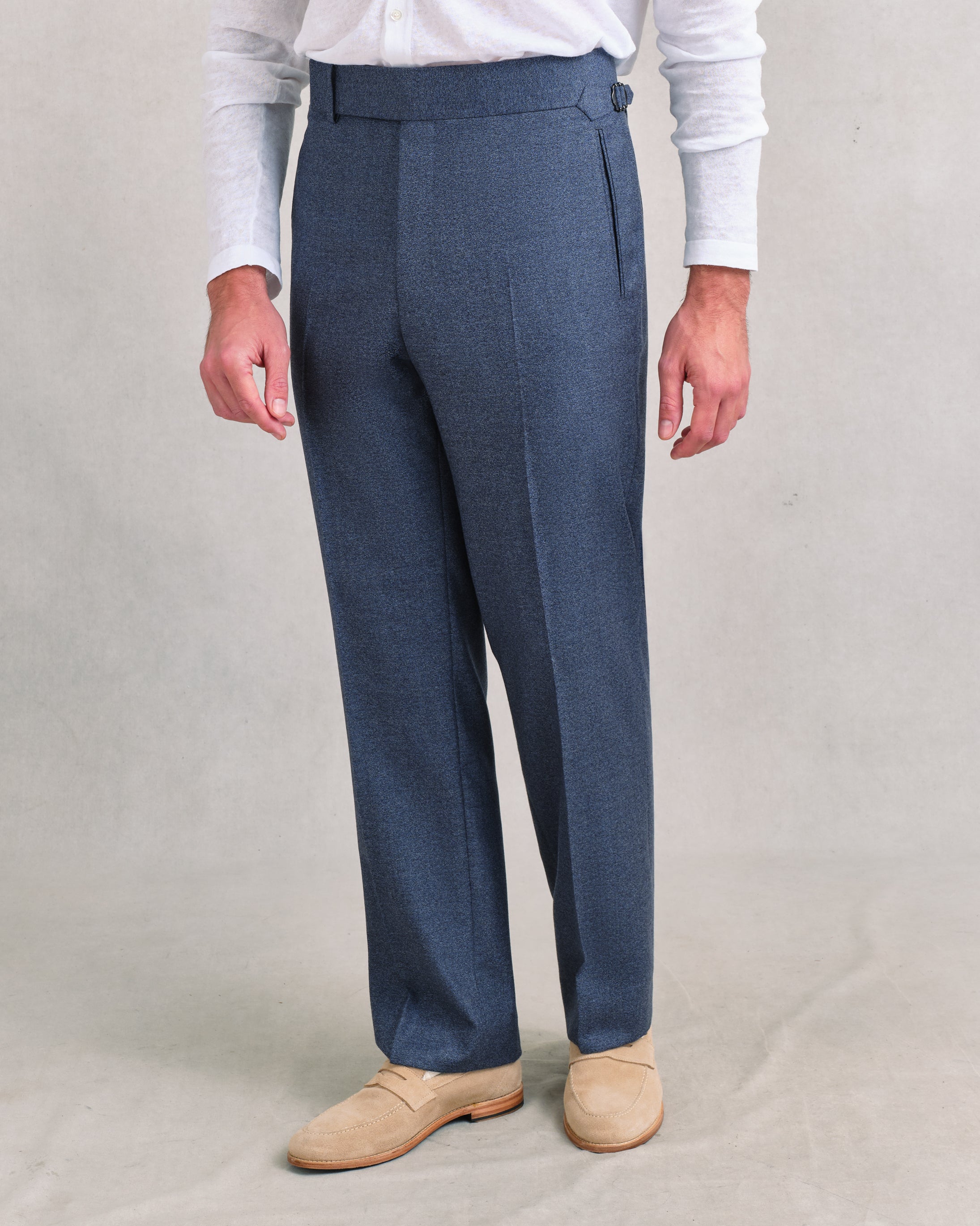 Our classic gentlemen’s trouser developed in 2023 is clean and close around the top but fuller through the knee and hem. This trouser is both comfortable and timelessly elegant, and with its 2” waistband with a long extension and side adjusters, it sits beautifully on an elegant shoe or rests naturally on a trainer.
