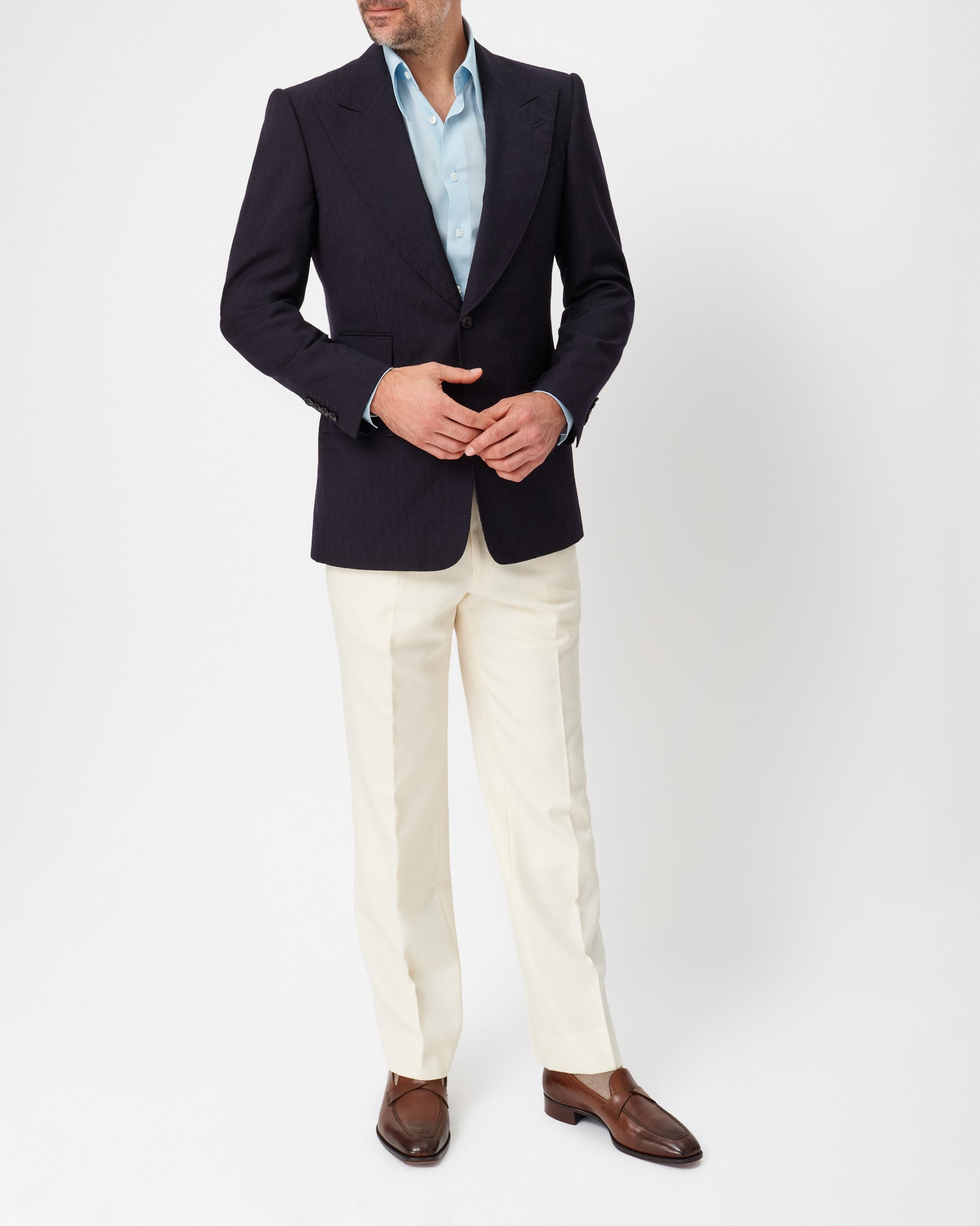 Our Heritage Jacket effortlessly combines classic elegance with modern flair. With confident peak lapels and a straight shoulder line, this single-button jacket creates a sleek and athletic silhouette. The single-button design highlights your natural waistline, while the broad lapel adds sophistication to your shoulders. Drawing inspiration from art deco aesthetics, this jacket offers a supremely elegant look that's both timeless and contemporary, embodying the Sexton legacy. Step into a world where classic tailoring meets modern sensibility with the Heritage Jacket.
