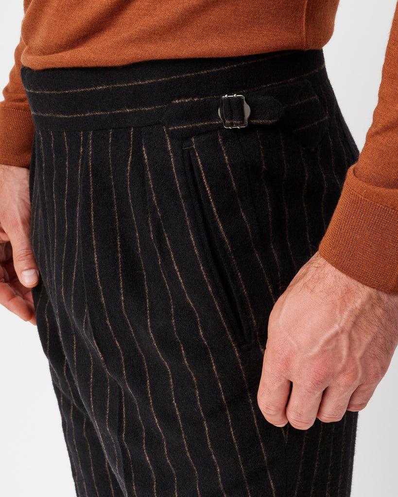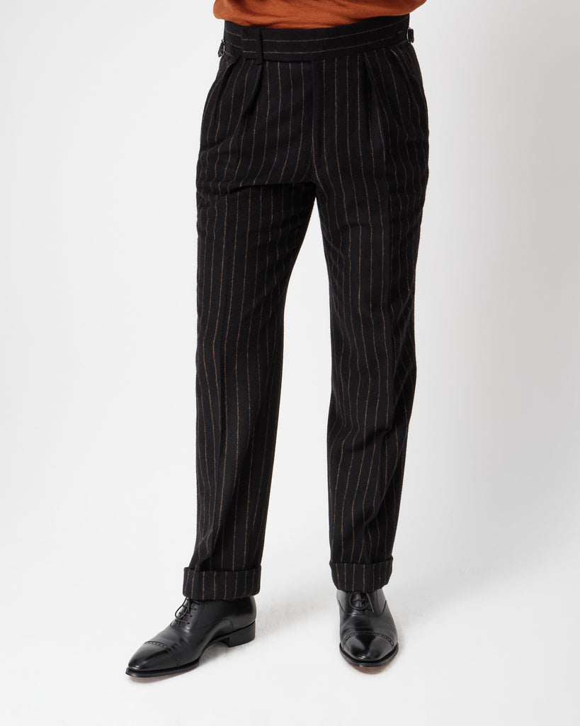 Black & Brown Chalk Stripe Flannel Heritage Trousers