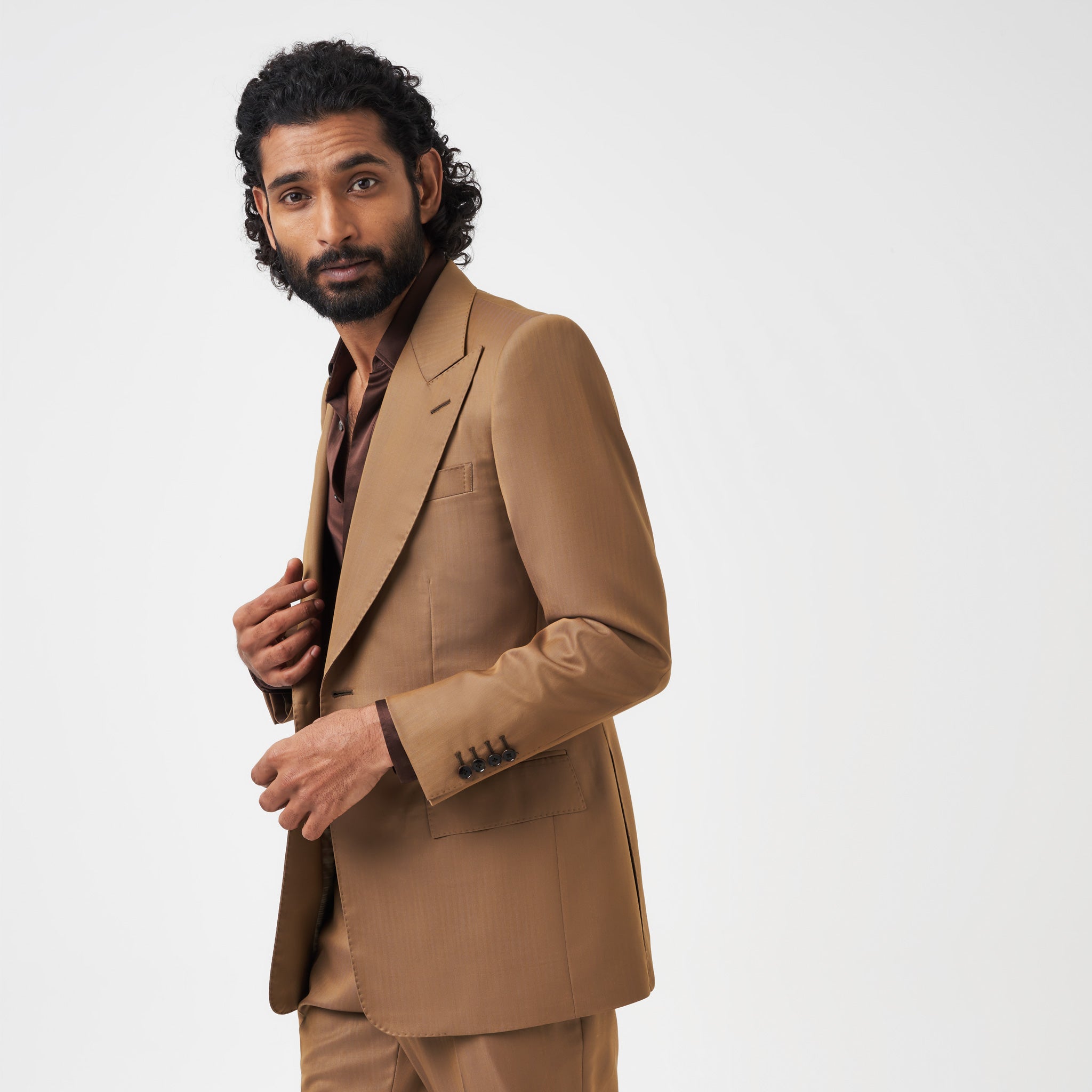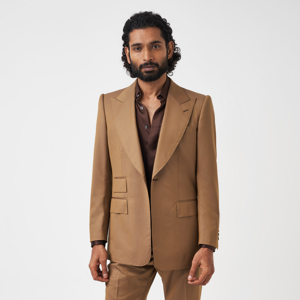 Our Heritage Jacket is the epitome of the Sexton look, cut with confident peak lapels, a straight shoulder line and one button to fasten. Single-breasted one-button jackets like this contribute to a lean, athletic look. The single button focuses the eye on the wearer's natural waistline, while a broad lapel draws the eye towards the shoulders, which contrasts with the jacket's slim waist. The overall impression is supremely elegant, and true to our art deco reference points.