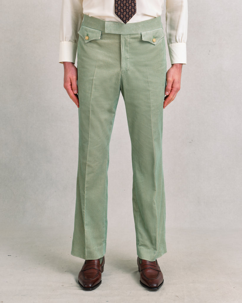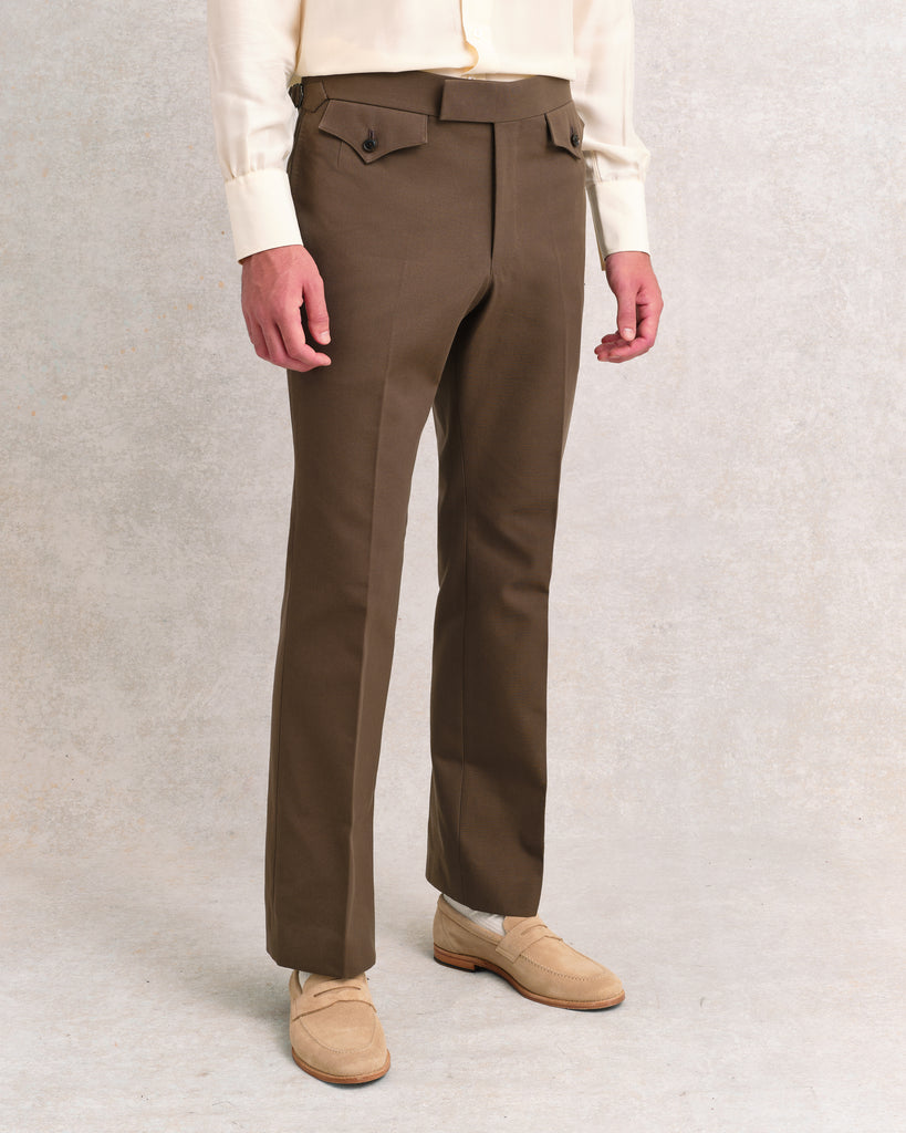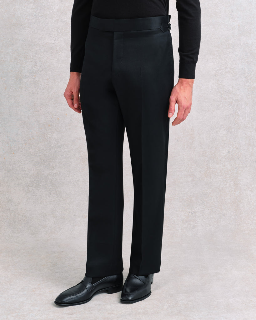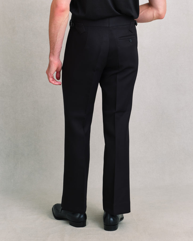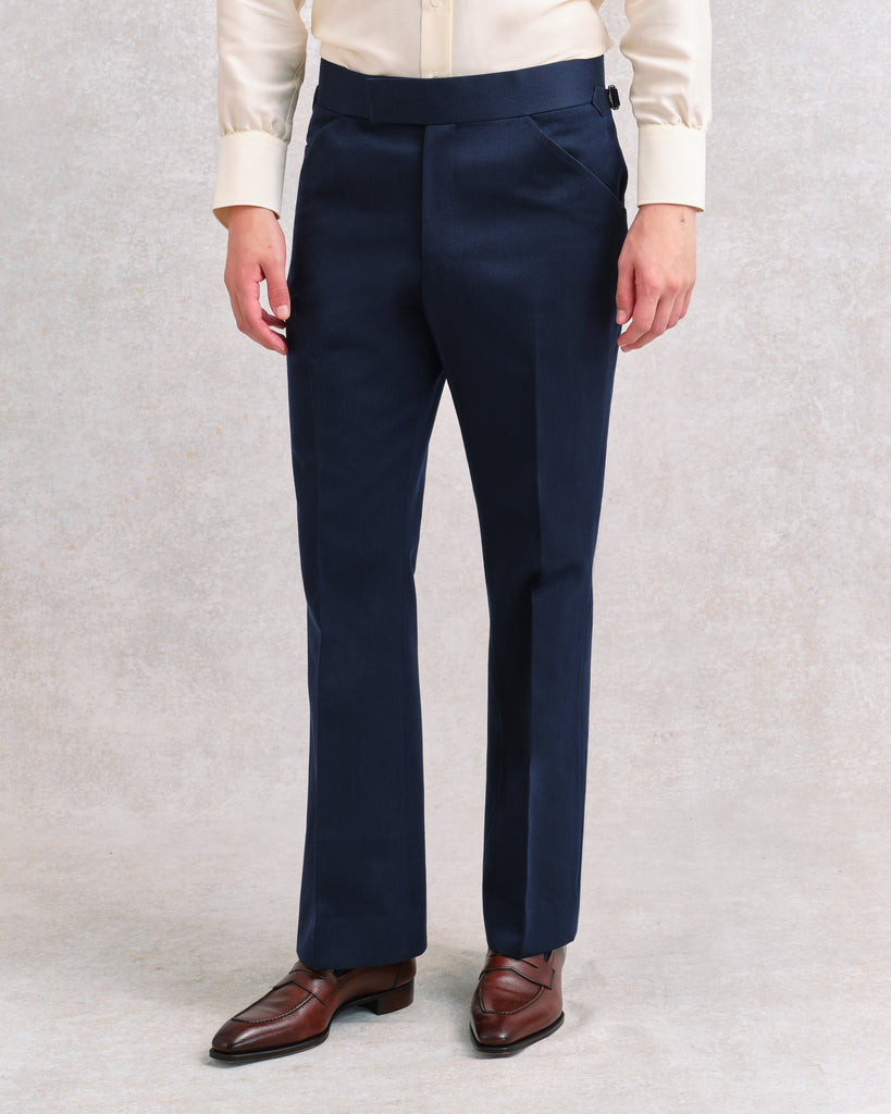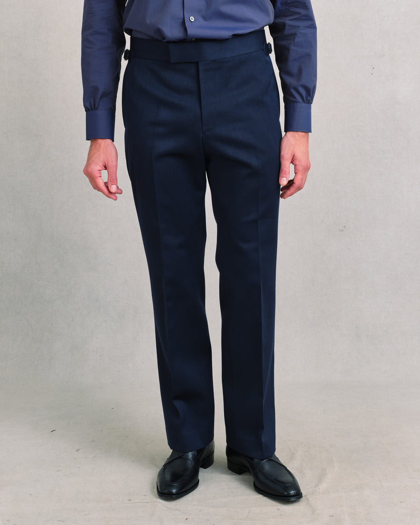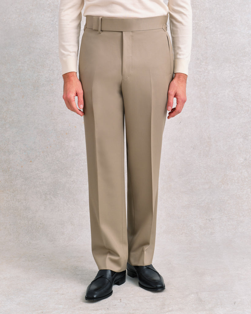 Most of our trousers are cut with timeless, gently tapered legs, but we also recently reintroduced Parallel Trousers, which taper through the thigh and then fall straight from the knee, giving the impression of a subtle flare. These come with no small amount of sex appeal, and are the style of trouser that Edward introduced at Nutter’s of Savile Row, as worn by the rock aristocracy of the 1970s – Mick Jagger in particular.