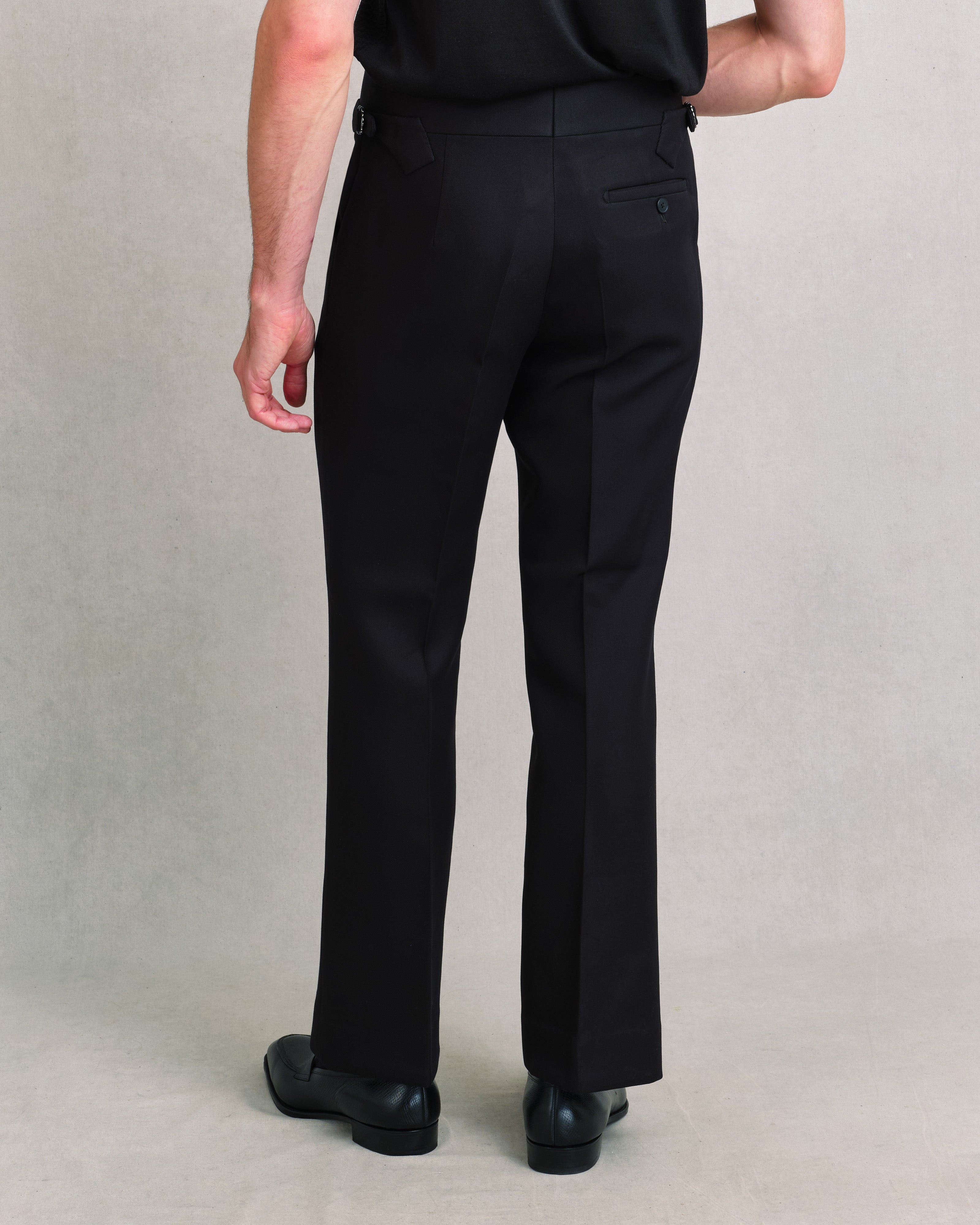 Most of our trousers are cut with timeless, gently tapered legs, but having recently reintroduced Parallel Trousers (which taper through the thigh and then fall straight from the knee) we have further developed the pattern to finish with a wider hem still. These come with no small amount of sex appeal, and are the style of trouser that Edward introduced at Nutter’s of Savile Row, as worn by the rock aristocracy of the 1970s – Mick Jagger in particular. Turn-ups add a touch of panache, and help wider leg trousers to drape and fall correctly – and so are always to be encouraged. We like healthy two-inch turn-ups on all of our trousers.