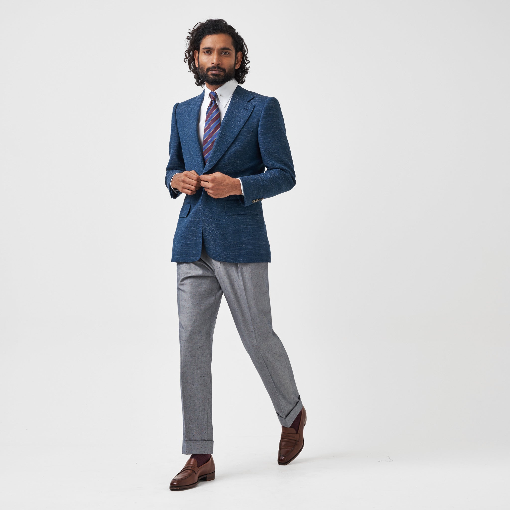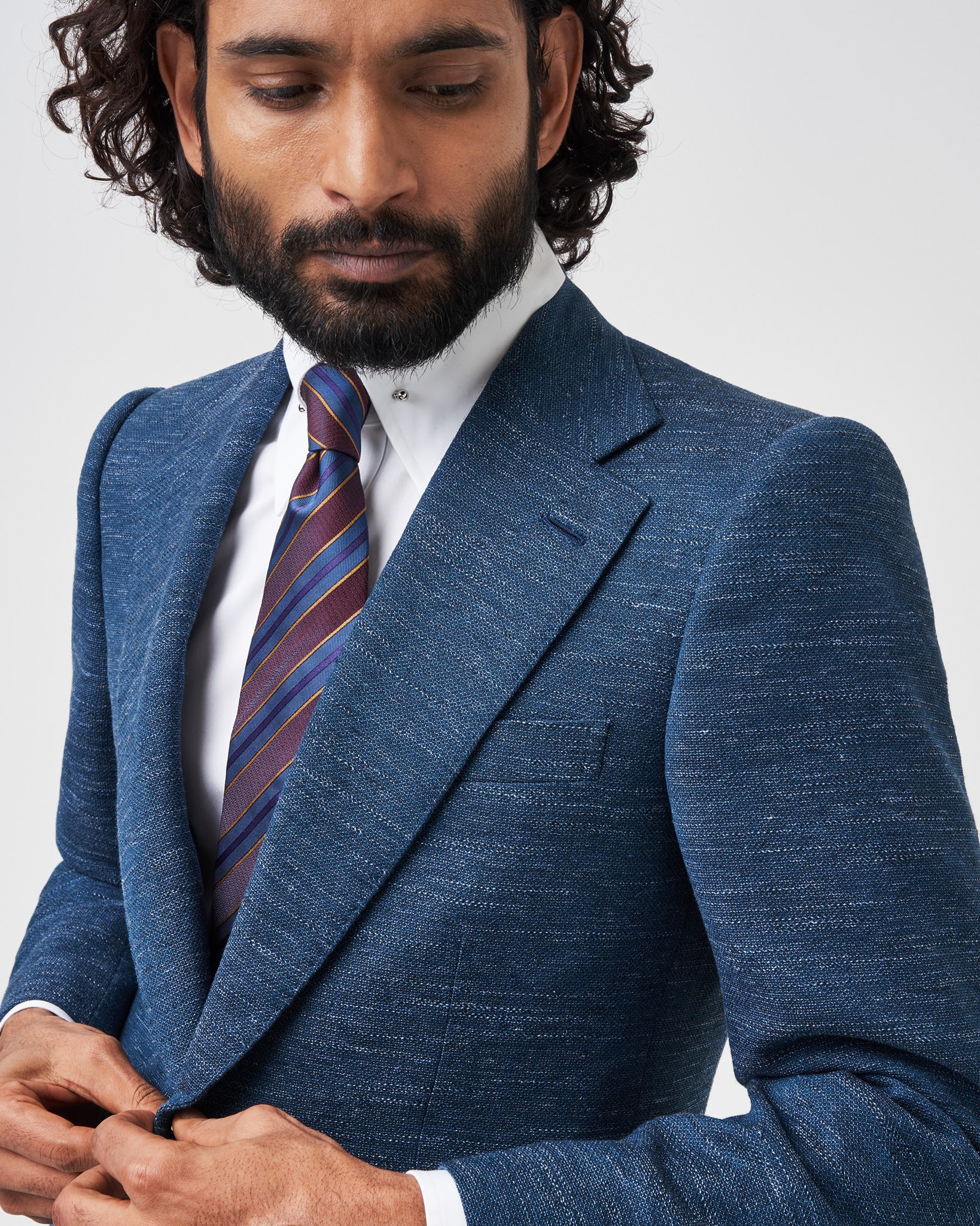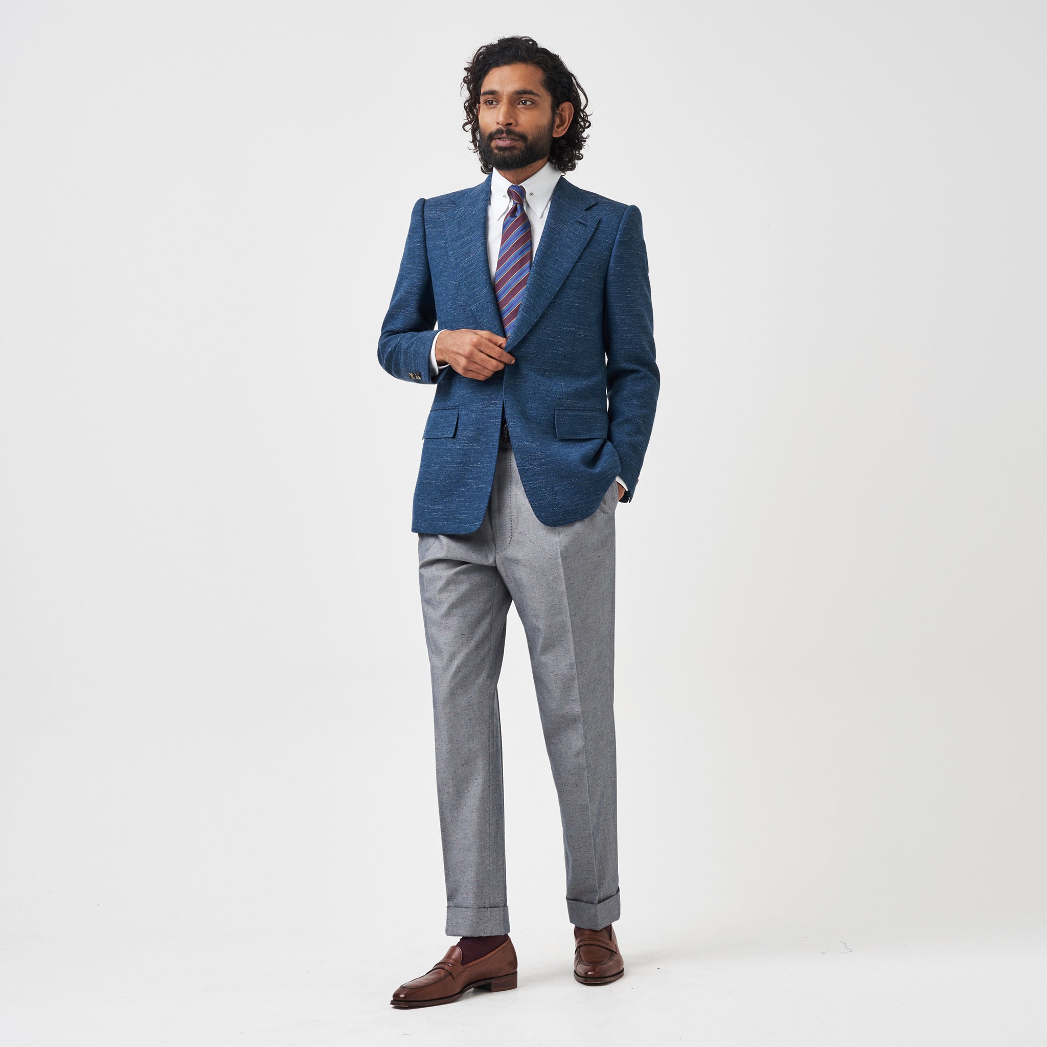 Our Heritage Jacket is the epitome of the Sexton look, cut with confident peak lapels, a straight shoulder-line and one button to fasten. Single-breasted one-button jackets like this contribute to a lean, athletic look. The single button focuses the eye on the wearer's natural waistline, while a broad lapel draws the eye towards the shoulders, which contrast with the jacket's slim waist. The overall impression is supremely elegant, and true to our art deco reference points.