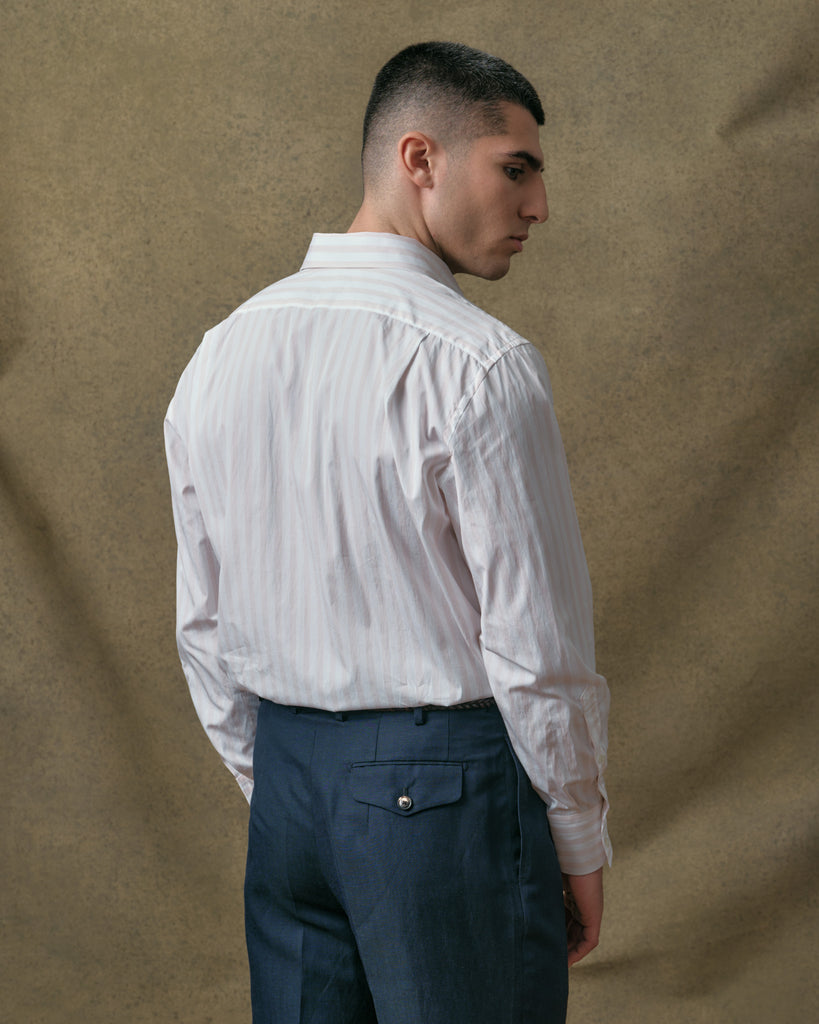 Our pièce de résistance, though, are our Hollywood Trousers, which are cut with an unstructured, soft waistband and belt loops. These are inspired by a particular kind of 'Athleisure' trouser that was popular in the 1940s and 50s, designed to be wonderfully comfortable and free-flowing. In flannel, corduroy or smooth gabardine, they're as sophisticated as trousers can be, and well-suited to creative dressers or clients in search of something chic to wear on the weekends.