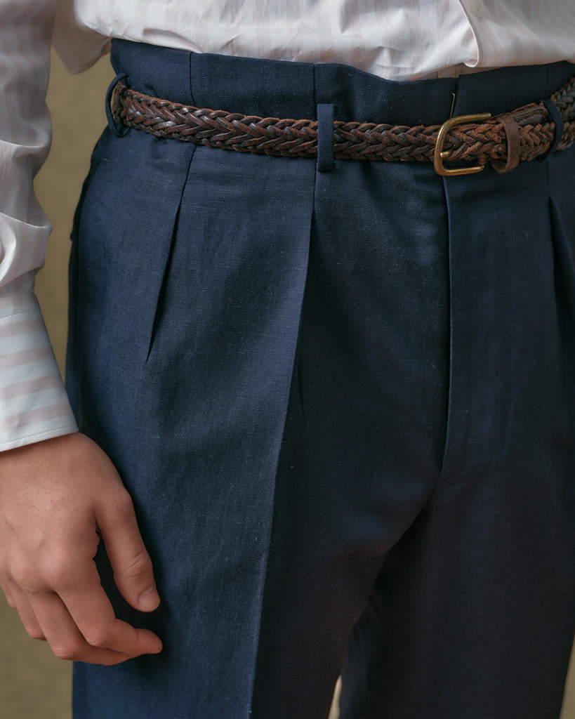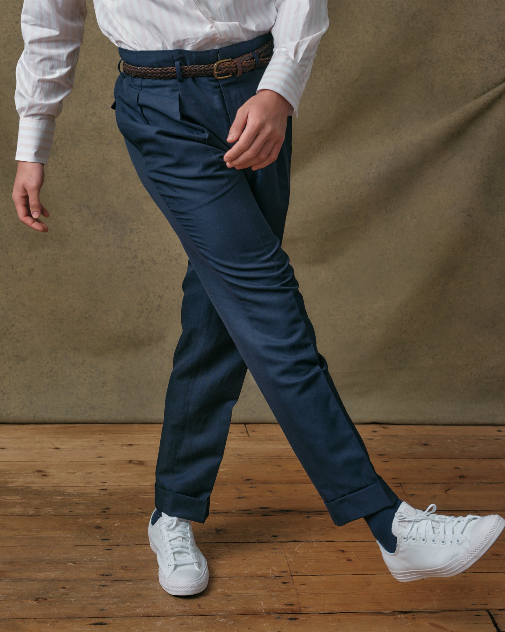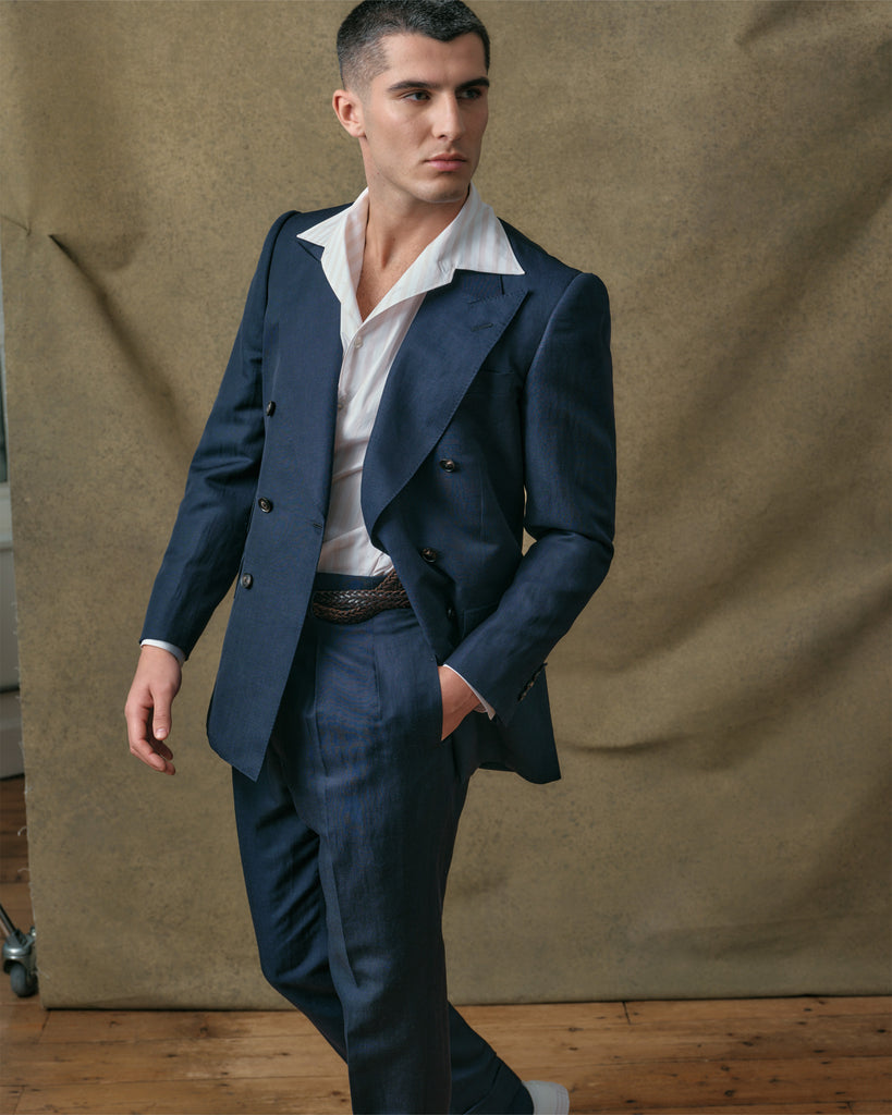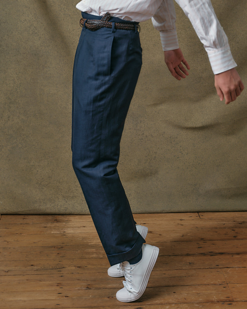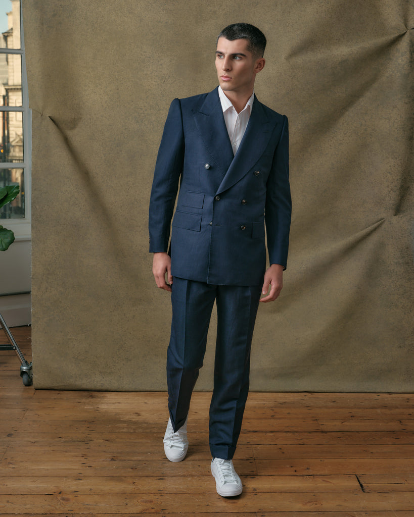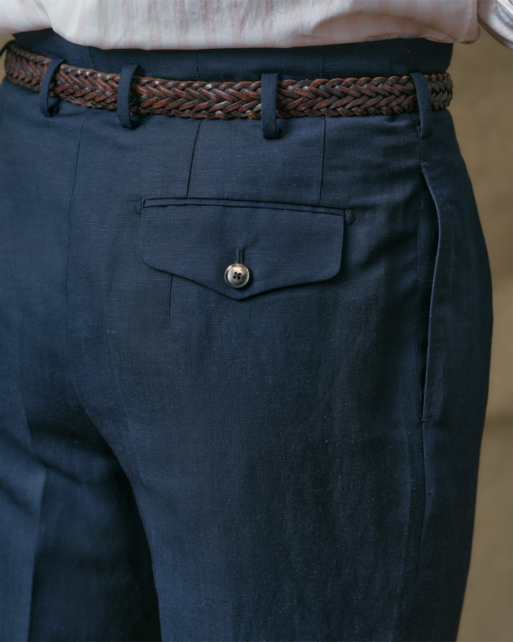 Wear as a standalone piece with an open collar shirt or Tee for a cool and casual retrogressive look. Alternatively; pair with the Double-Breasted jacket of the same cloth to complete the retro vibe - or indeed match with any one of the three jackets made in matching Navy linen blend to customise the suit to your taste.