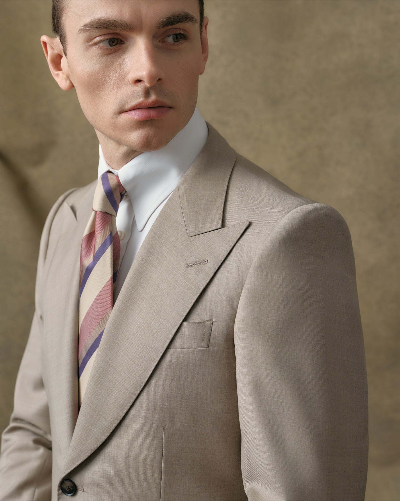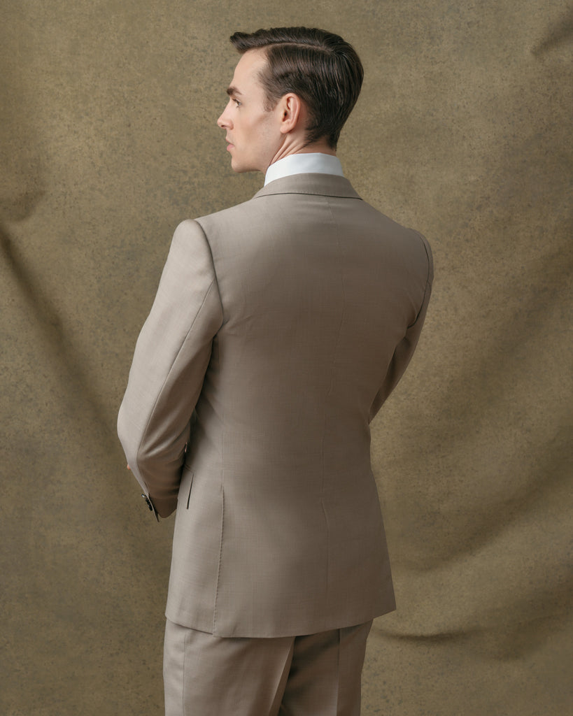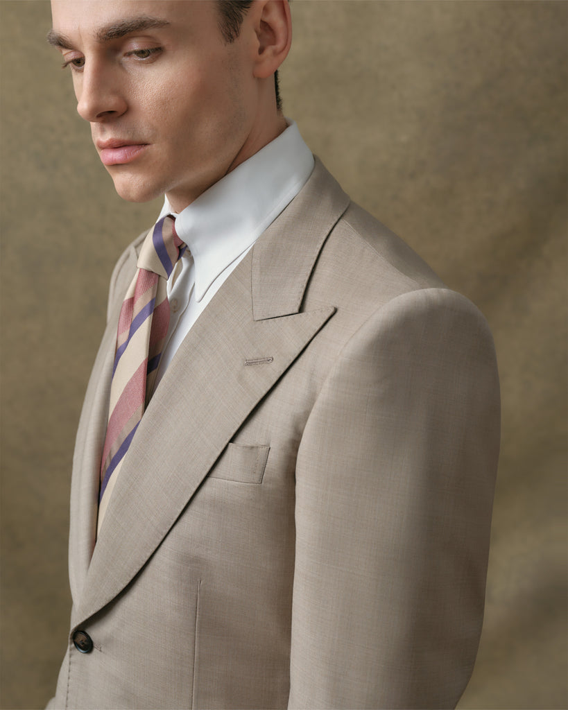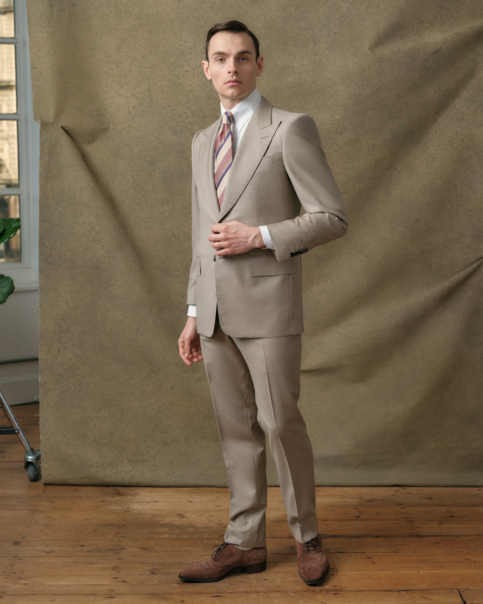 Italian woven 100% wool at a cool 280g. The pick and pick weave provides texture, the colour warmth, and the wool provides breathability and durability.