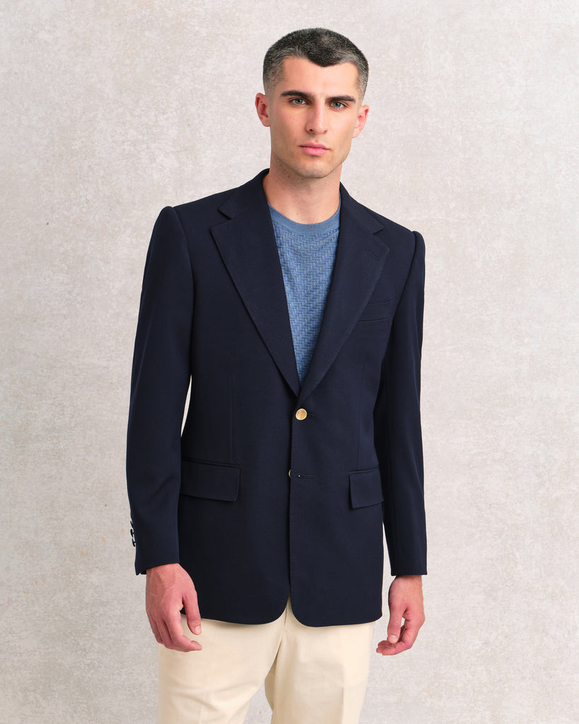 Firm and robust with plenty of movement and natural stretch, and a textured surface, this excelent blazer cloth woven in Italy weighs 480gsm and is 100% wool.