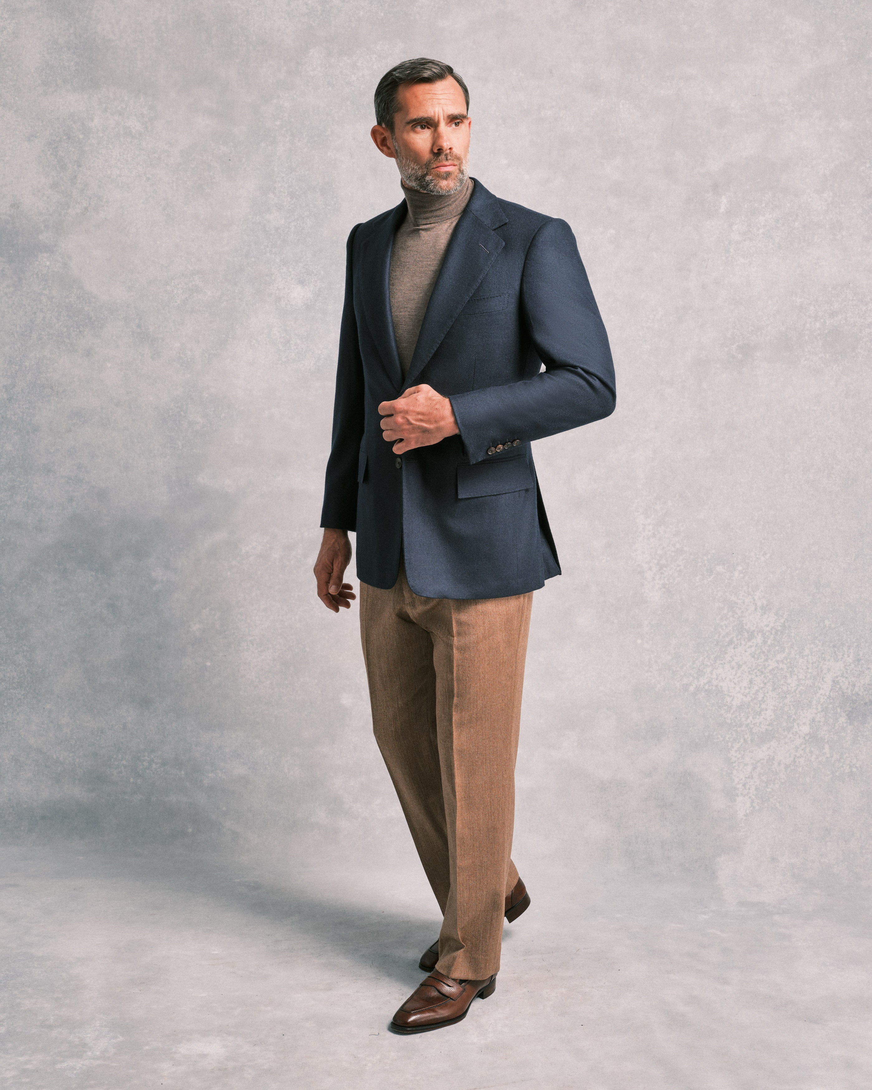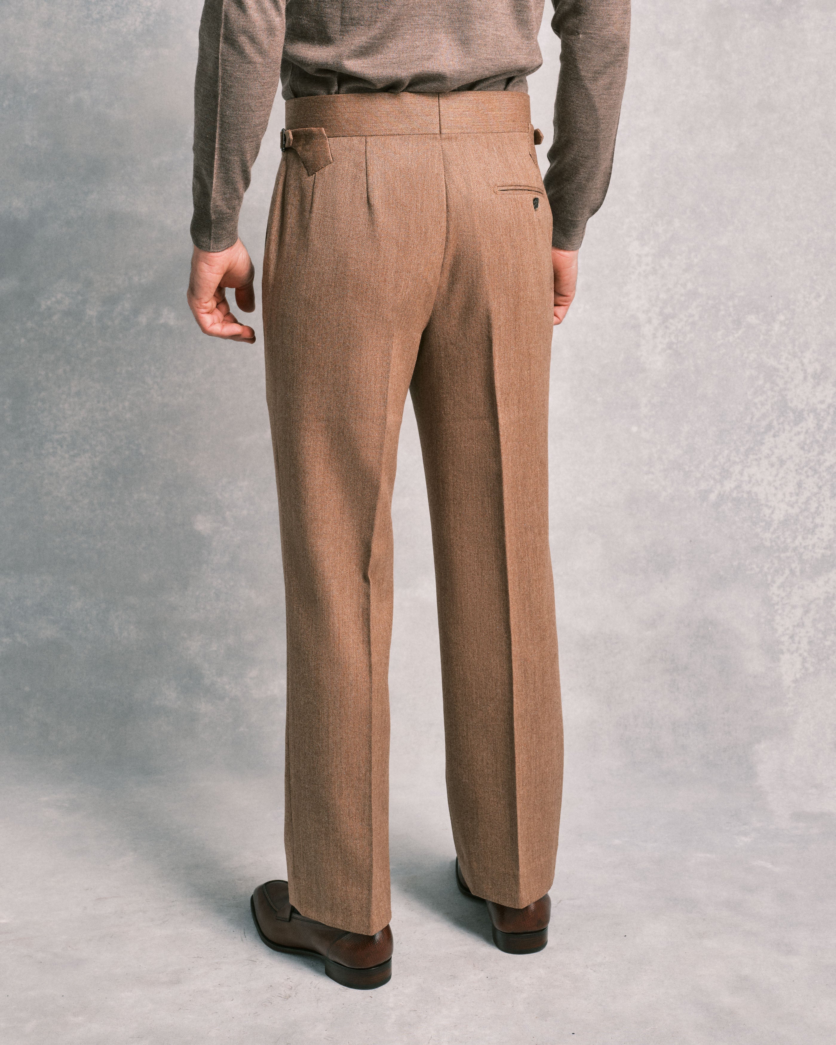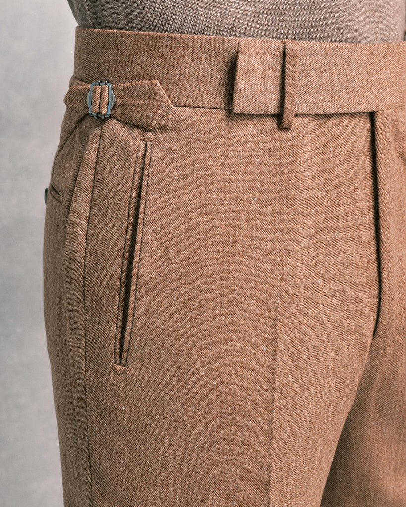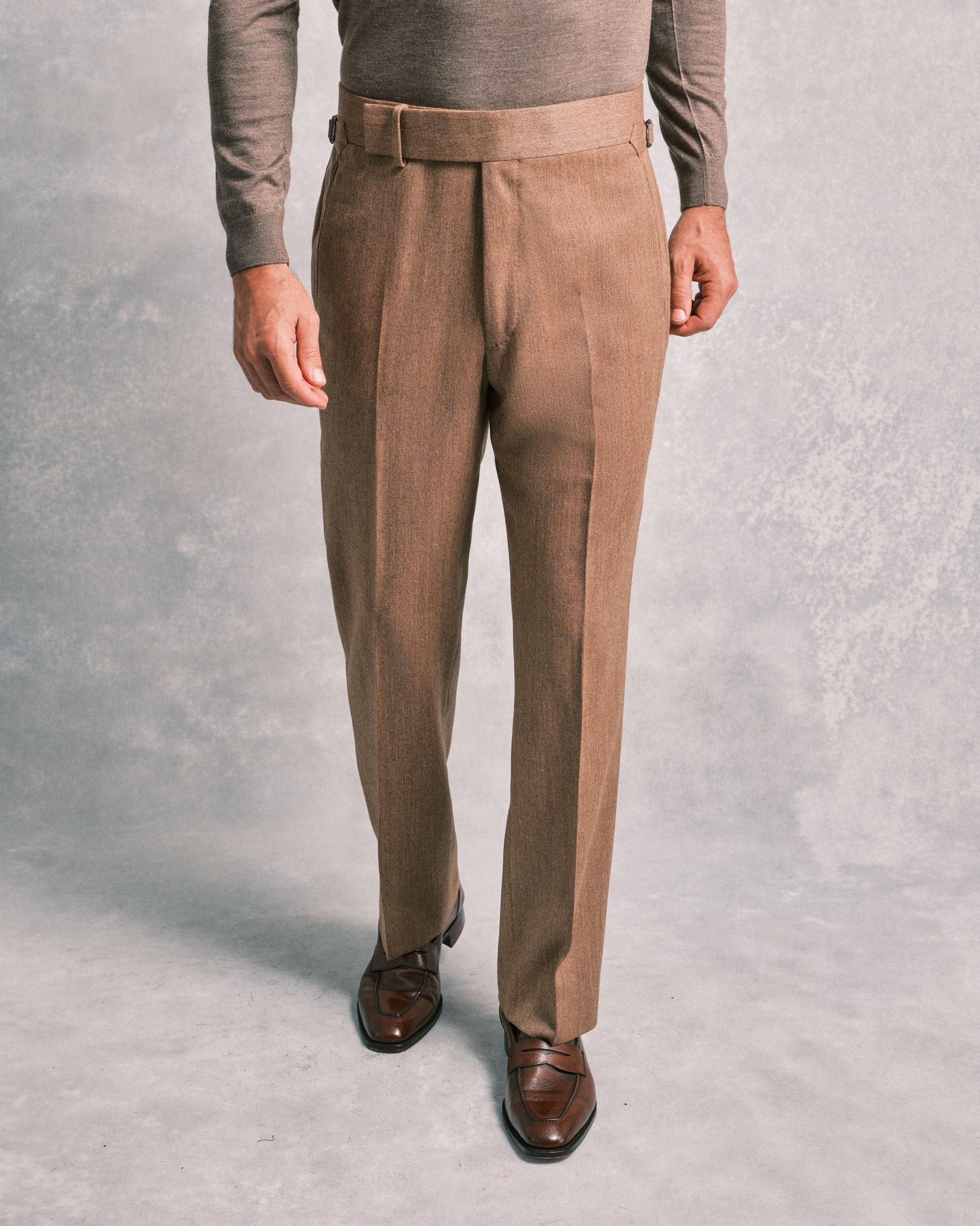 Our classic gentlemen’s trouser developed in 2023 is clean and close around the top but fuller through the knee and hem. This trouser is both comfortable and timelessly elegant, and with its 2” waistband with a long extension and side adjusters, it sits beautifully on an elegant show or rests naturally on a trainer.