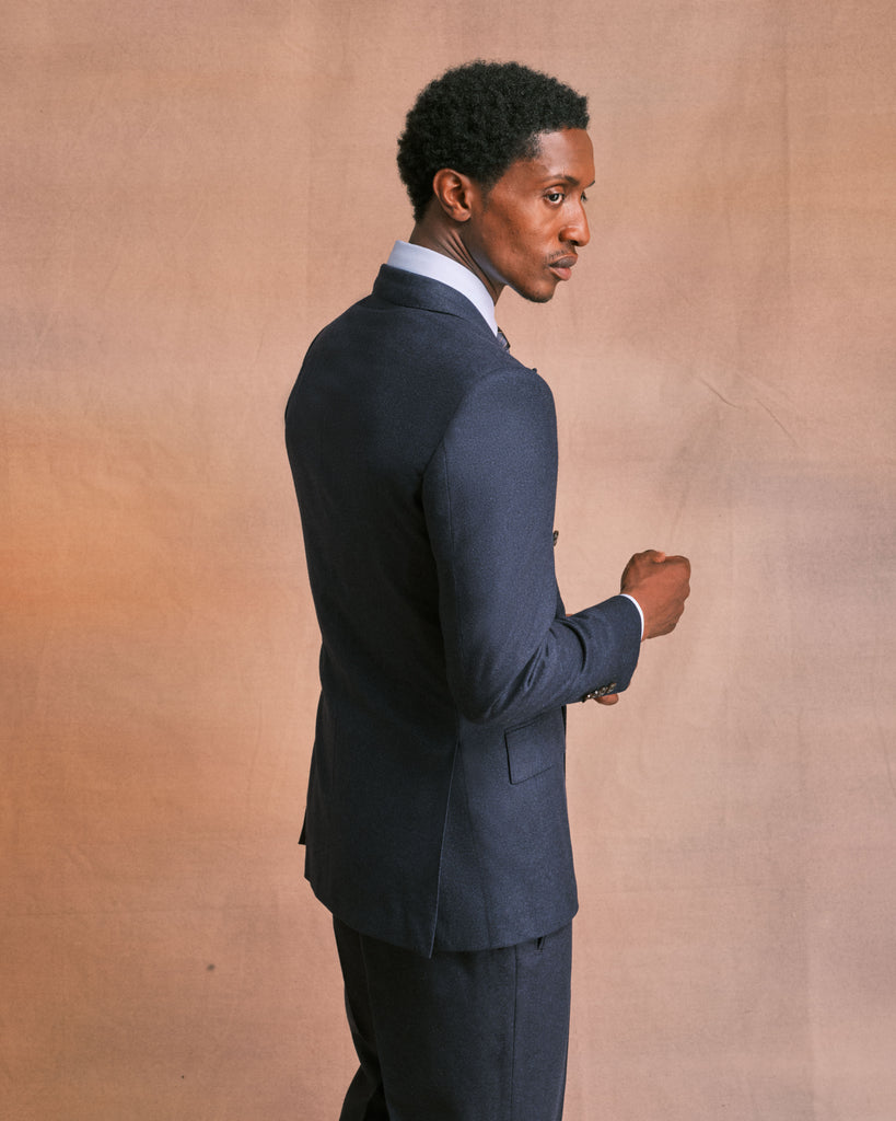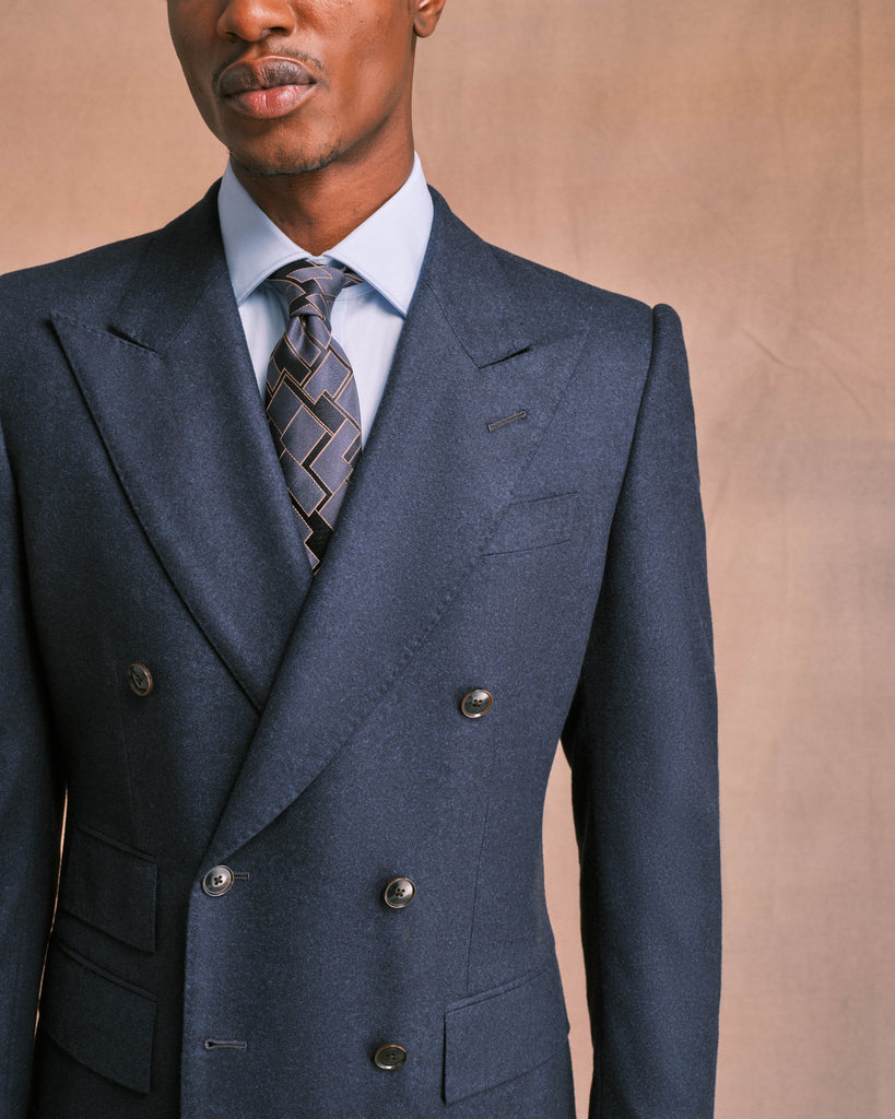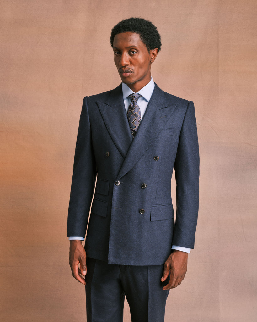 Exuding classic and simple elegance, the Navy Flannel double-breasted suit stands as a Sexton staple. With its timeless colour, depth, richness, and texture; it is the perfect choice for a winter navy suit or as a blazer.