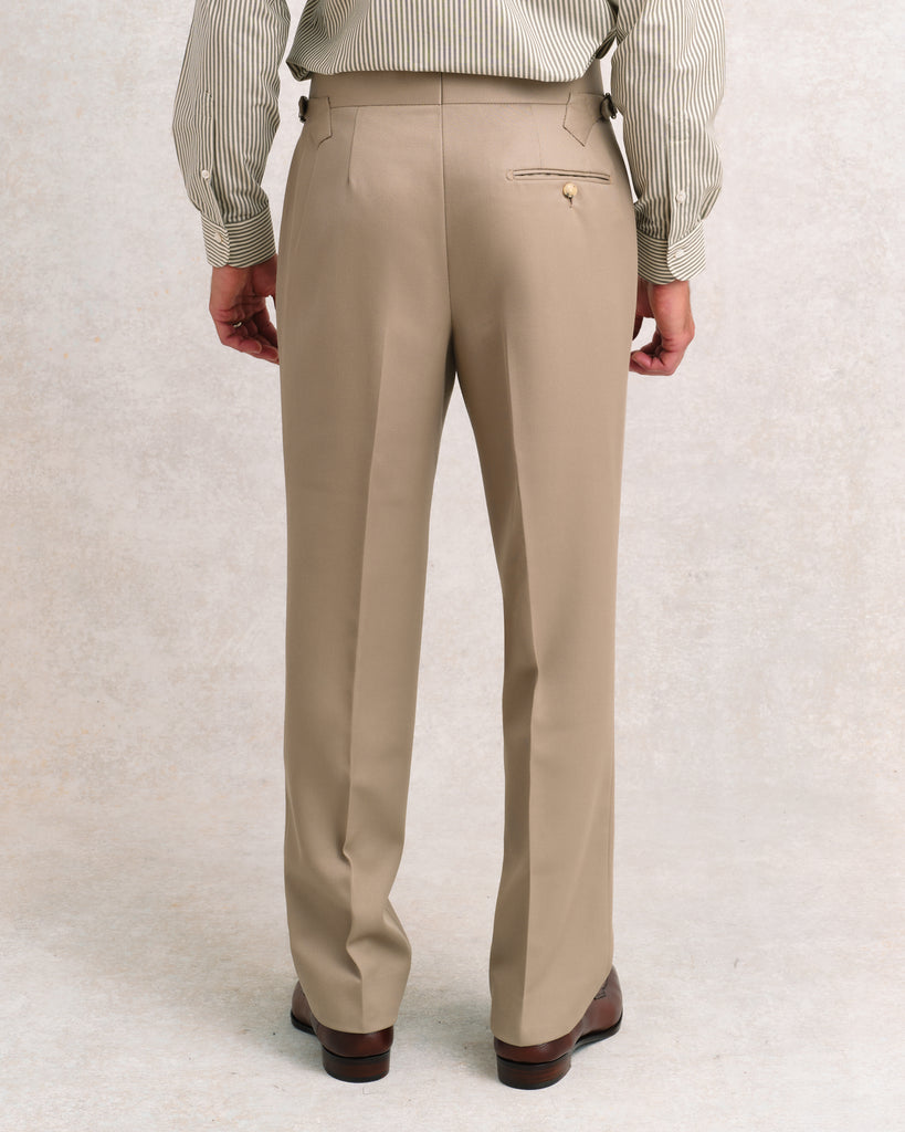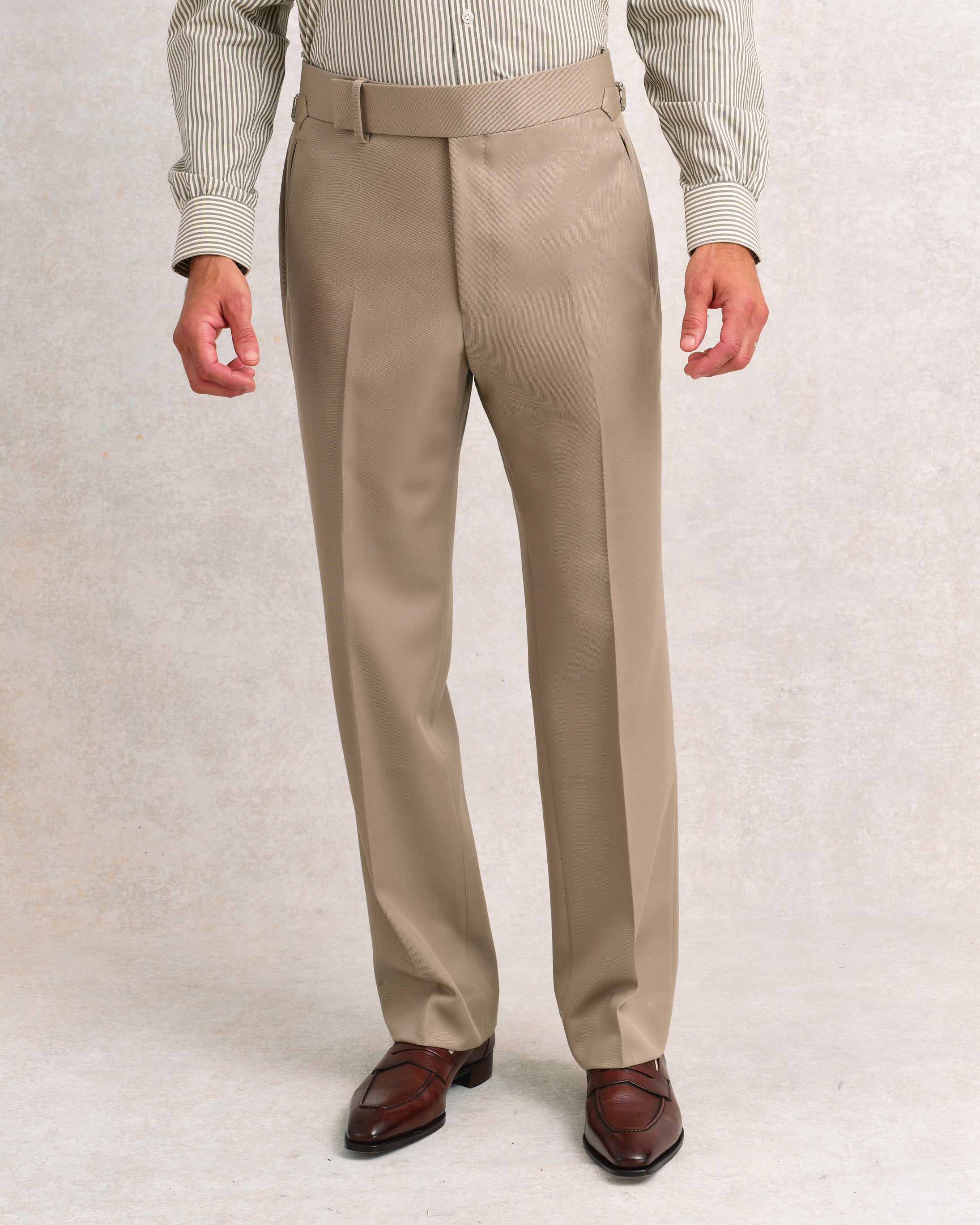 Our classic gentlemen’s trouser developed in 2023 is clean and close around the top but fuller through the knee and hem. This trouser is both comfortable and timelessly elegant, and with its 2” waistband with a long extension and side adjusters, it sits beautifully on an elegant show or rests naturally on a trainer.