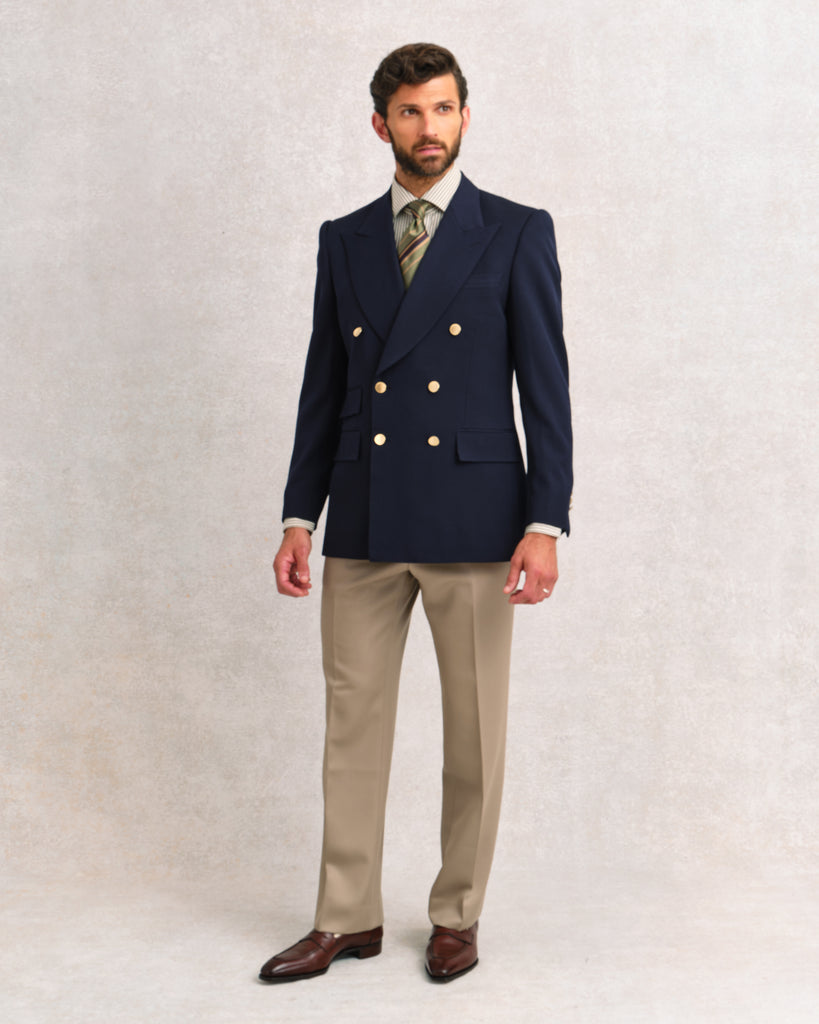A classic trousering in a well structured 100% wool woven in Italy. This cloth has excellent crease resistance and makes a versatile trouser.