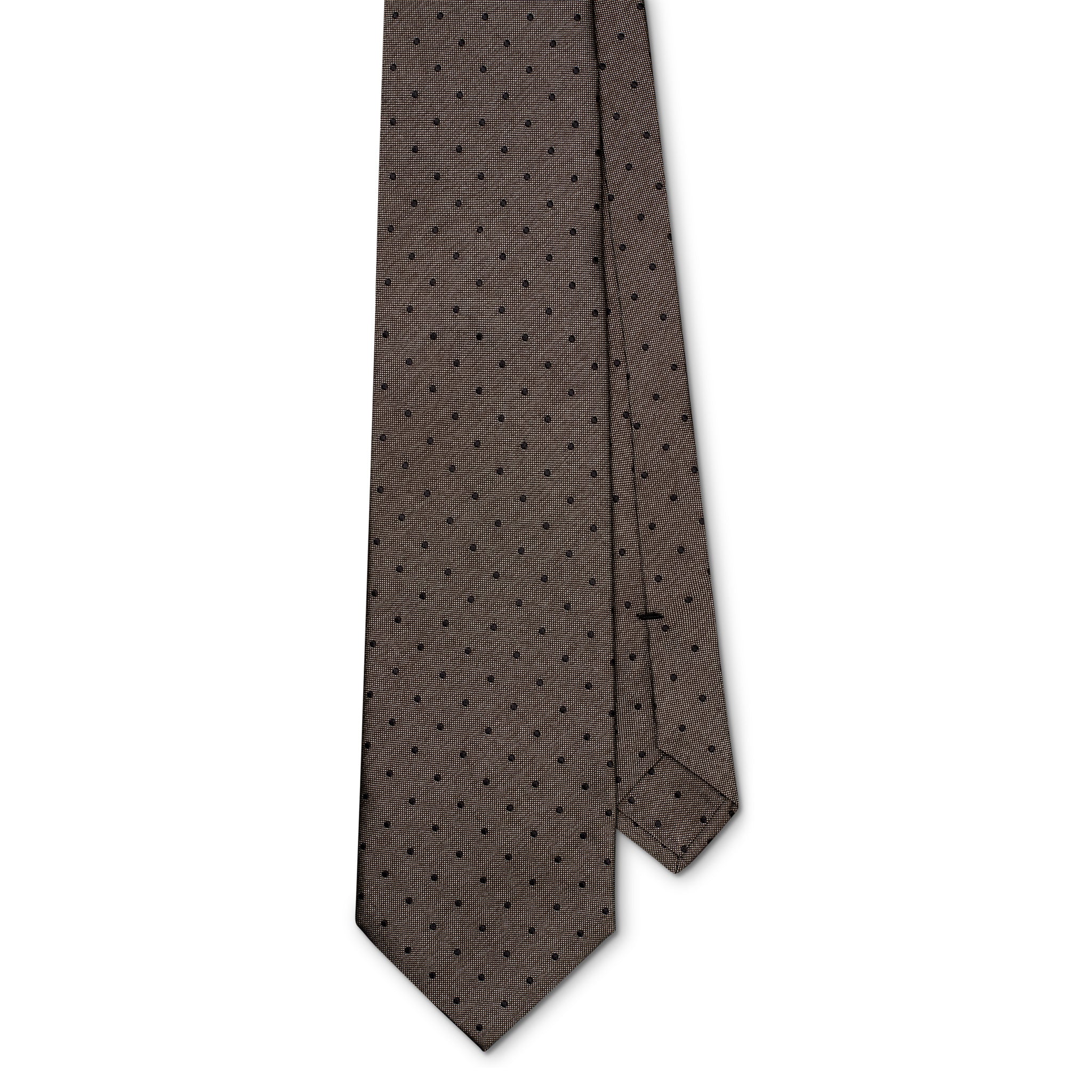 A two-tone colour combination of finely printed navy spots on a dark bronze base. The subtle polkadots add a touch of detail to bring your look to life.
