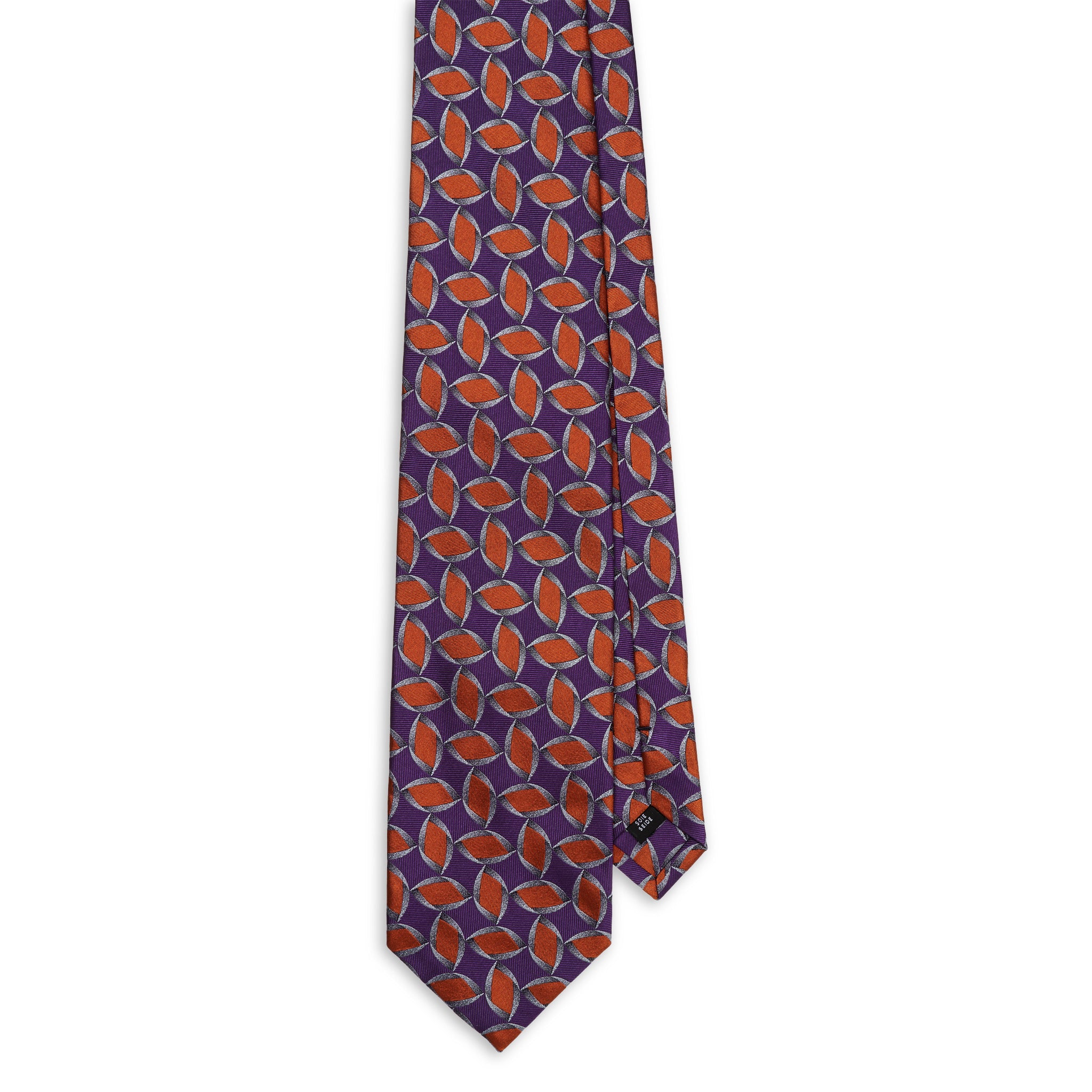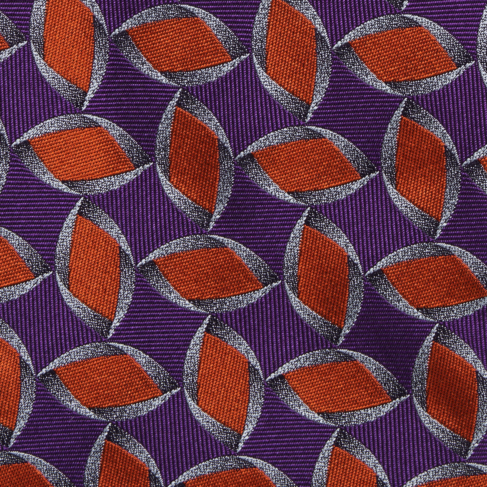 Our striking Purple and Orange silk tie is woven to resemble an abstract thick silver chain link. The rich, bold and lustrous silk design is ideal for adding a purposeful splash of texture and colour to your formal or party attire.