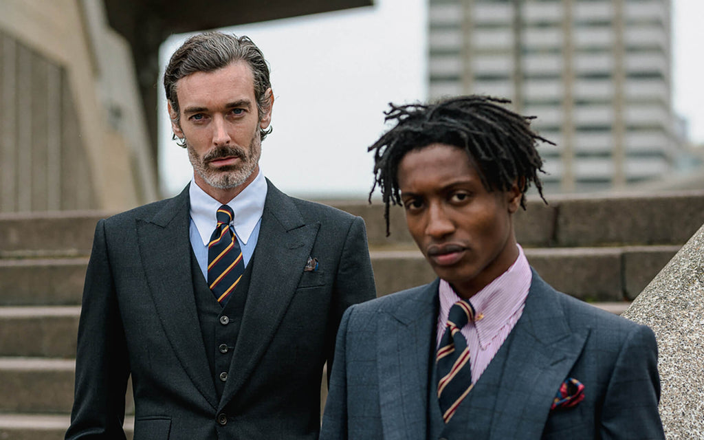 Ties are best suited to dark colours and subtle patterns, like classic polka dots or subtle floral prints. College repp or military stripe ties are timeless, and suitably understated with either a flannel suit or navy blazer. Fashion should determine the width of stripe; the season the colour. Only wear a striped tie with a striped shirt if it has a white collar and cuffs and the shirt stripe is subtle.