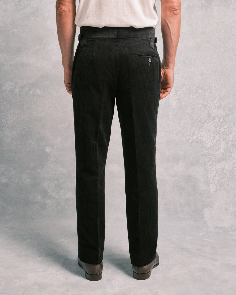 Our classic gentlemen’s trouser developed in 2023 is clean and close around the top but fuller through the knee and hem. This trouser is both comfortable and timelessly elegant, and with its 2” waistband with a long extension and side adjusters, it sits beautifully on an elegant show or rests naturally on a trainer.