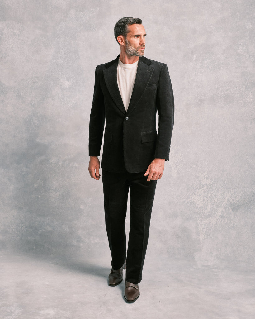 Deep black and richly textured, this corduroy cloth is characteristically dense and weighing 480g/m - great for the cooler months of the year. The fabric is woven in 90% Cotton as its base, for a rich pile, 8% Polyamide for the structure of the cloth in with 2% Elastane for a little stretch so you can move easily.