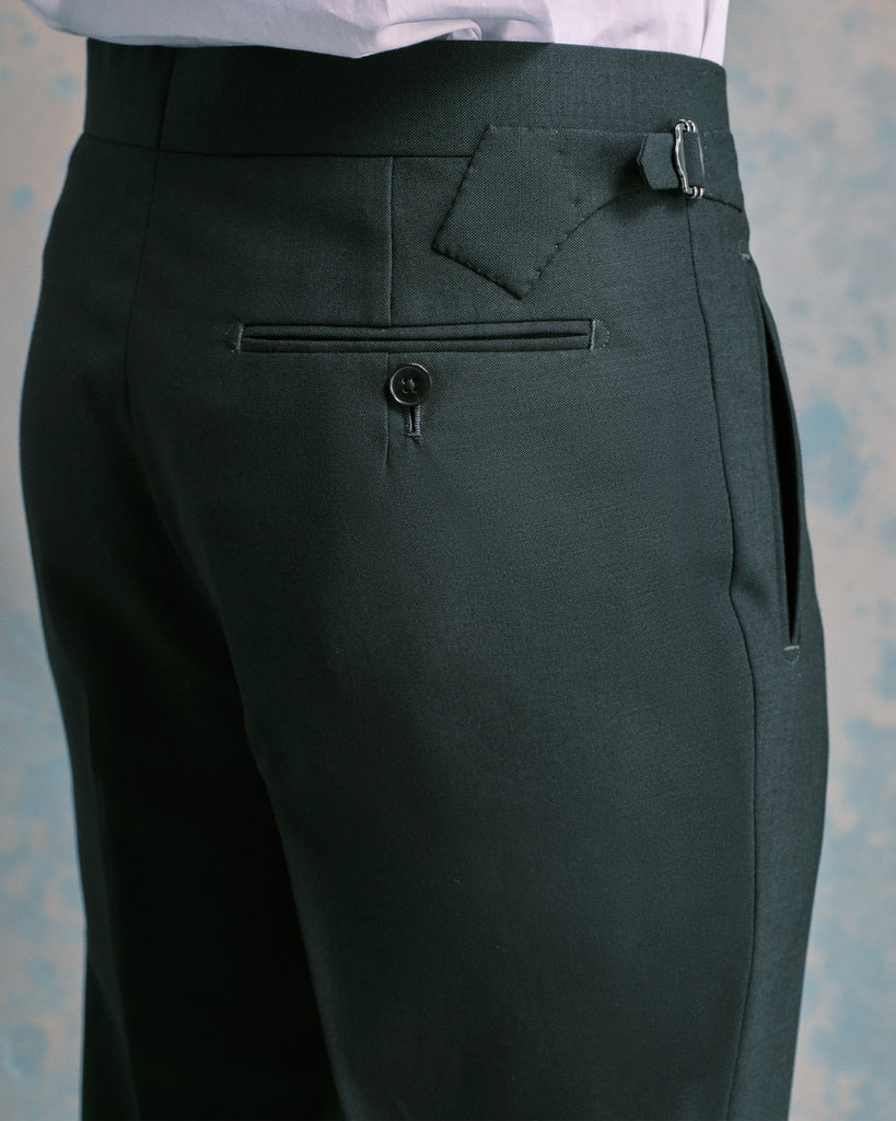 Sleek sophistication defines our Dark Forest Green Contemporary Trousers. Tailored to perfection, they offer a streamlined silhouette that complements any setting, whether it's a daytime event or an evening affair. wear them as a separate or with our Dark Forest Green Heritage Jacket, as a great suit.