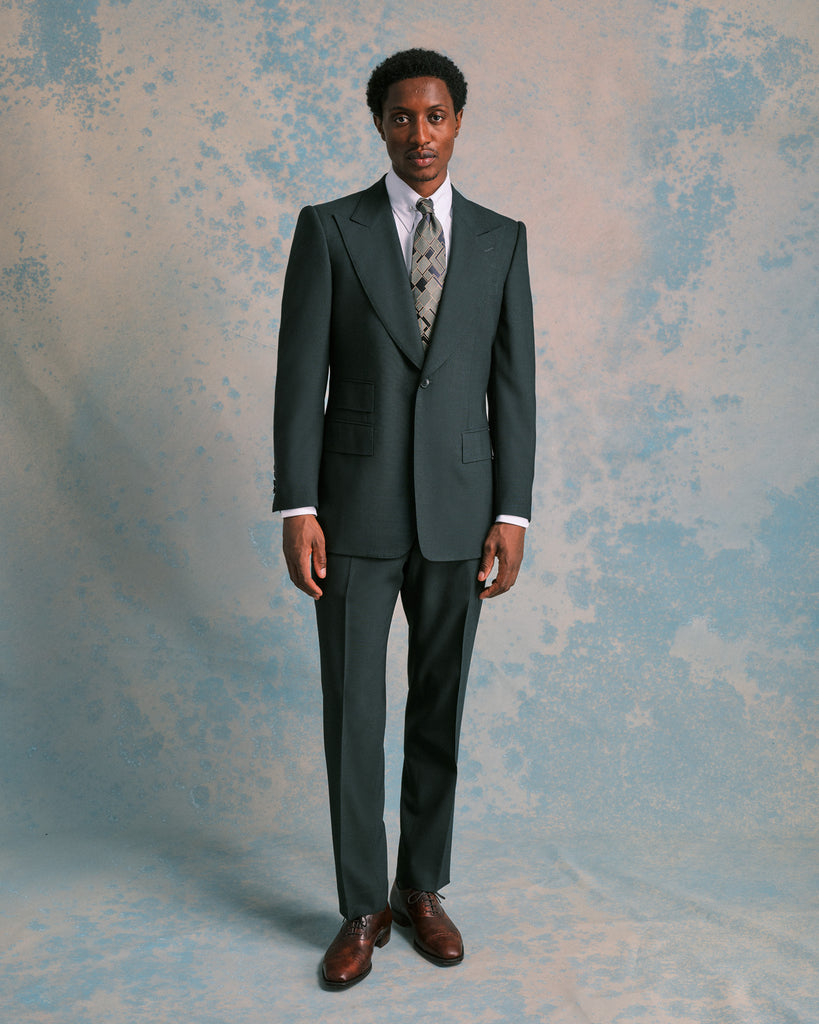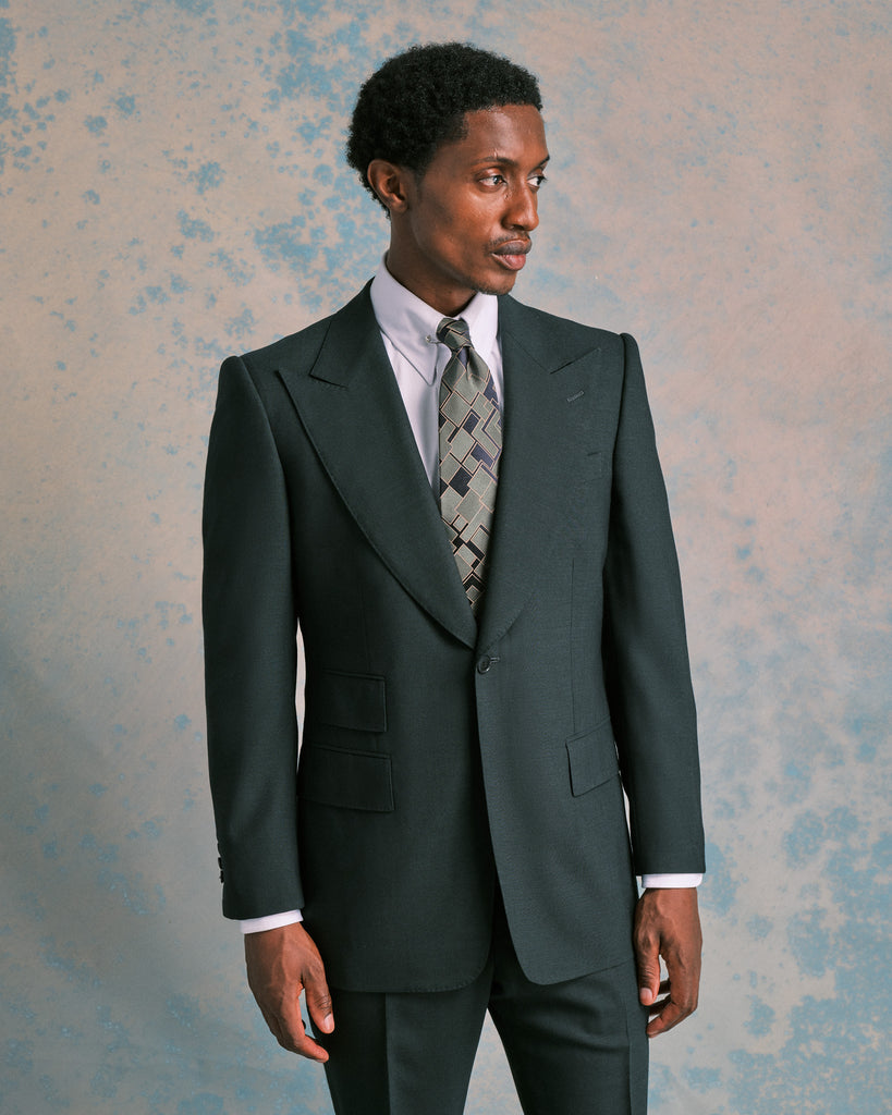 Our Dark Green High Twist Wool fabric, woven in England from 300 g/m 100% wool, is a testament to sartorial excellence. With its exceptional breathability, elegant drape, and a touch of allure, this fabric transcends occasions. Whether you're dressing for day or evening affairs, even weddings, its versatility shines through.