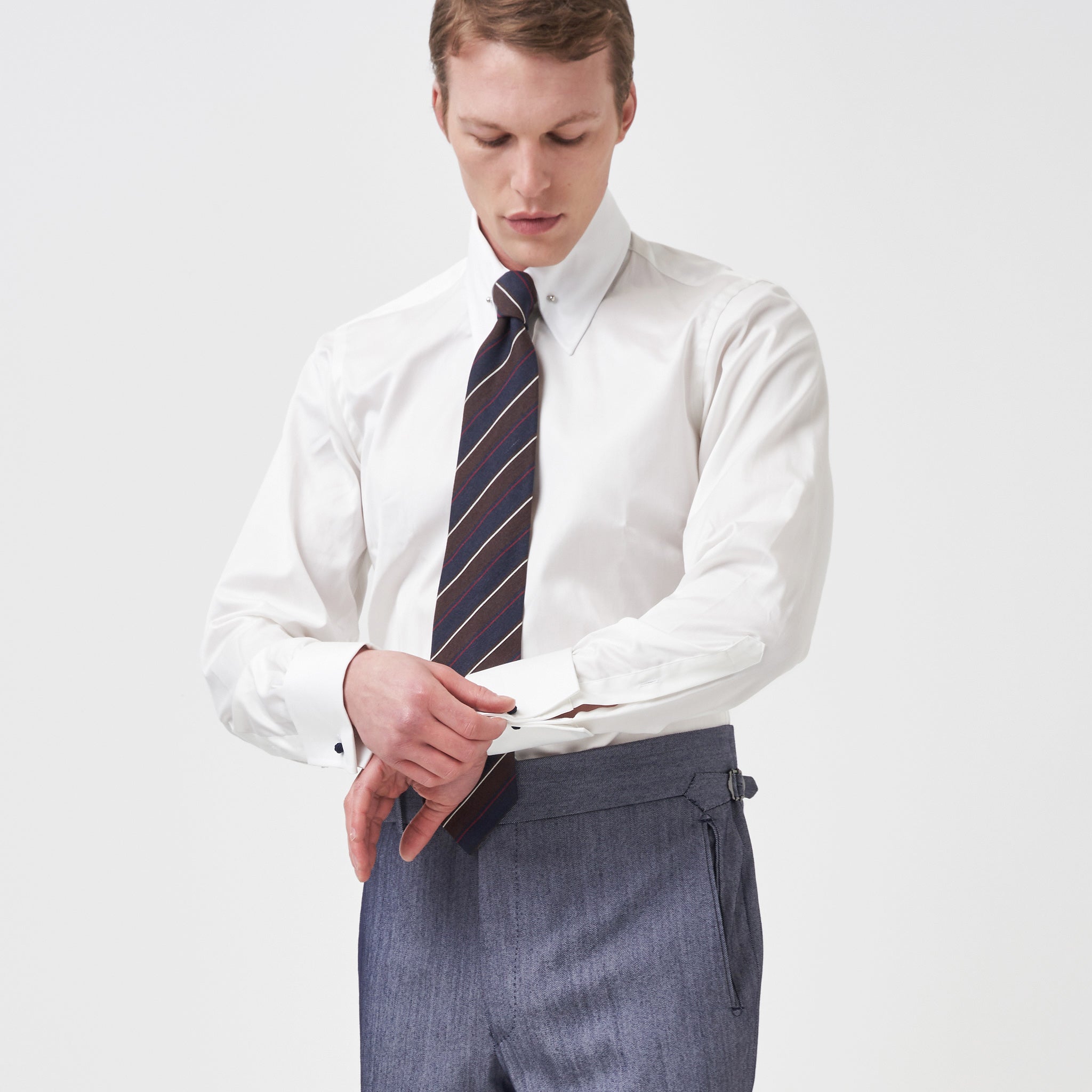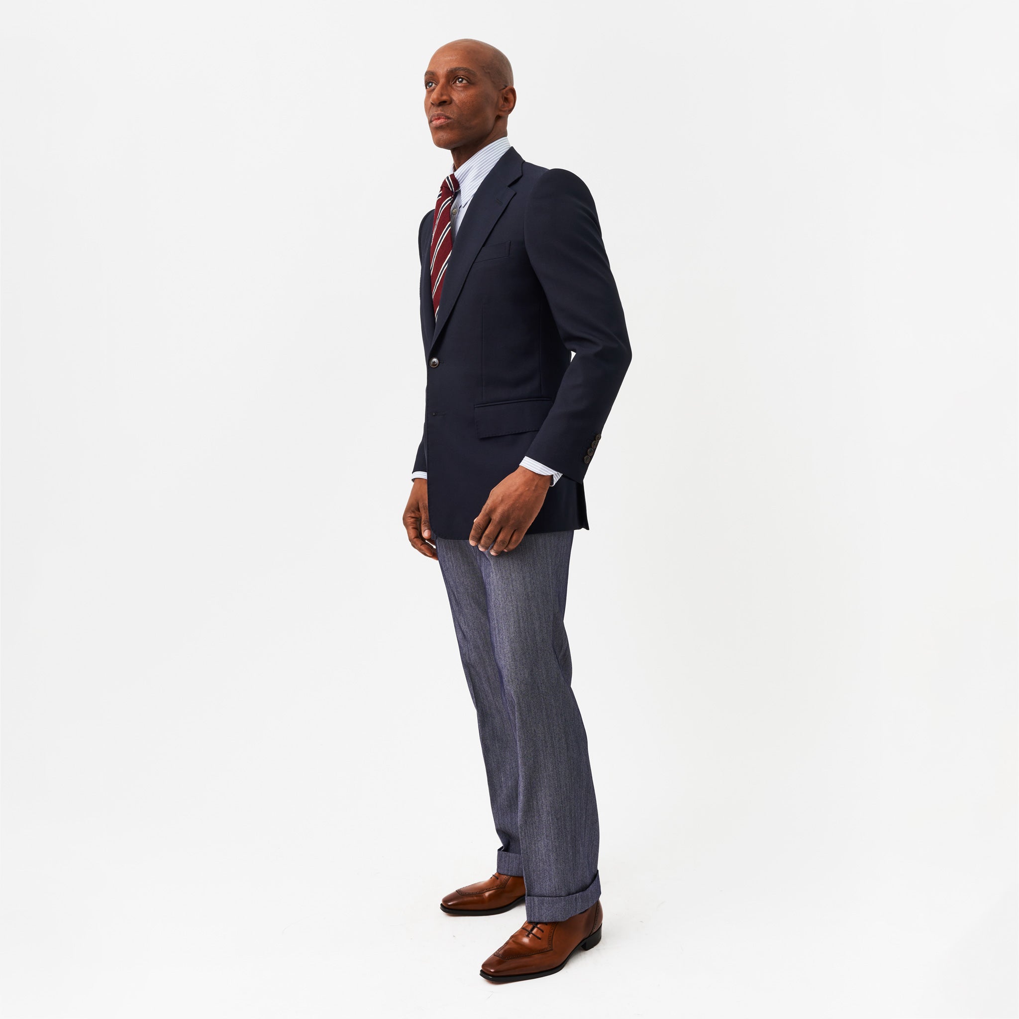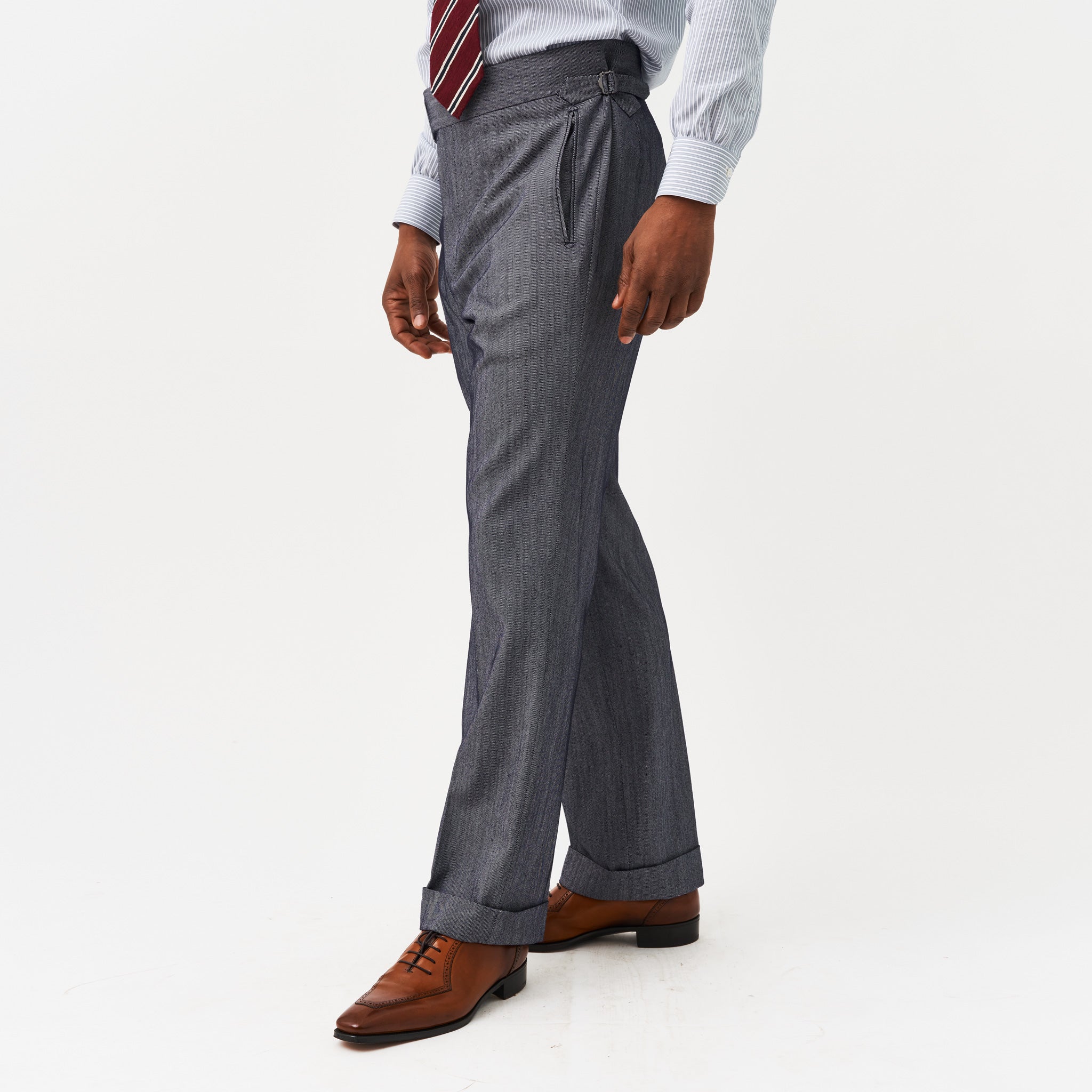 Our classic gentlemen’s trouser new for 2023 is clean and close around the top but fuller through the knee and hem. This trouser is both comfortable and timelessly elegant, and with its 2” waistband with a long extension and side adjusters, it sits beautifully on an elegant show or rests naturally on a trainer.