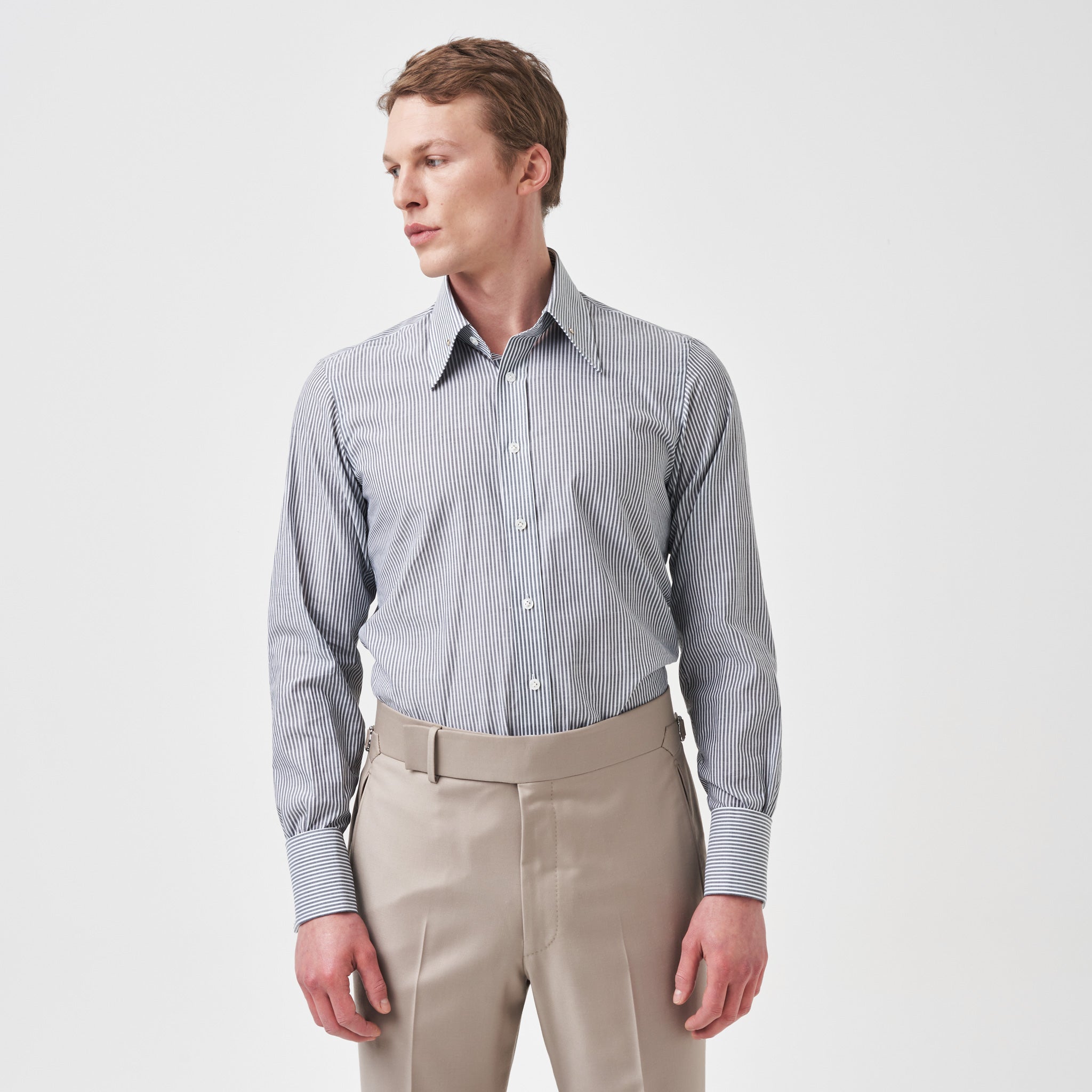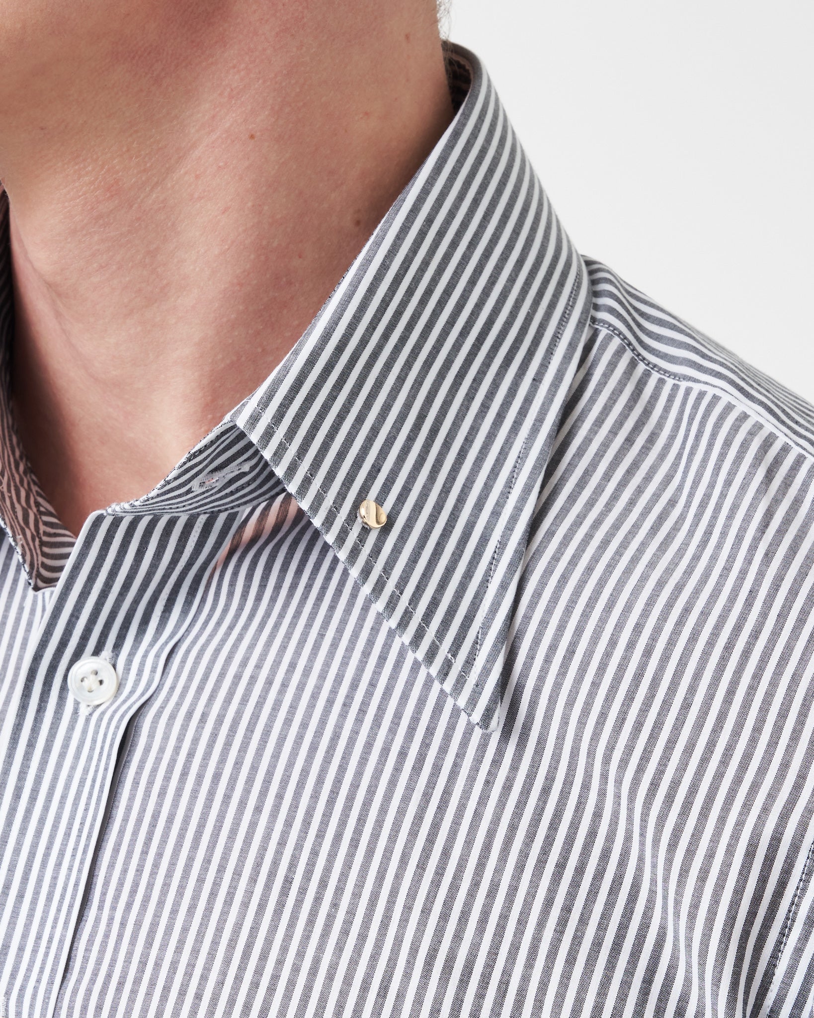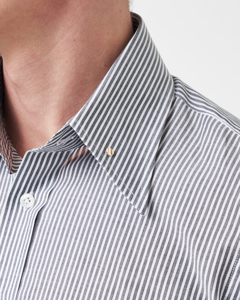 Grey Bengal Stripe Pin Collar Shirt