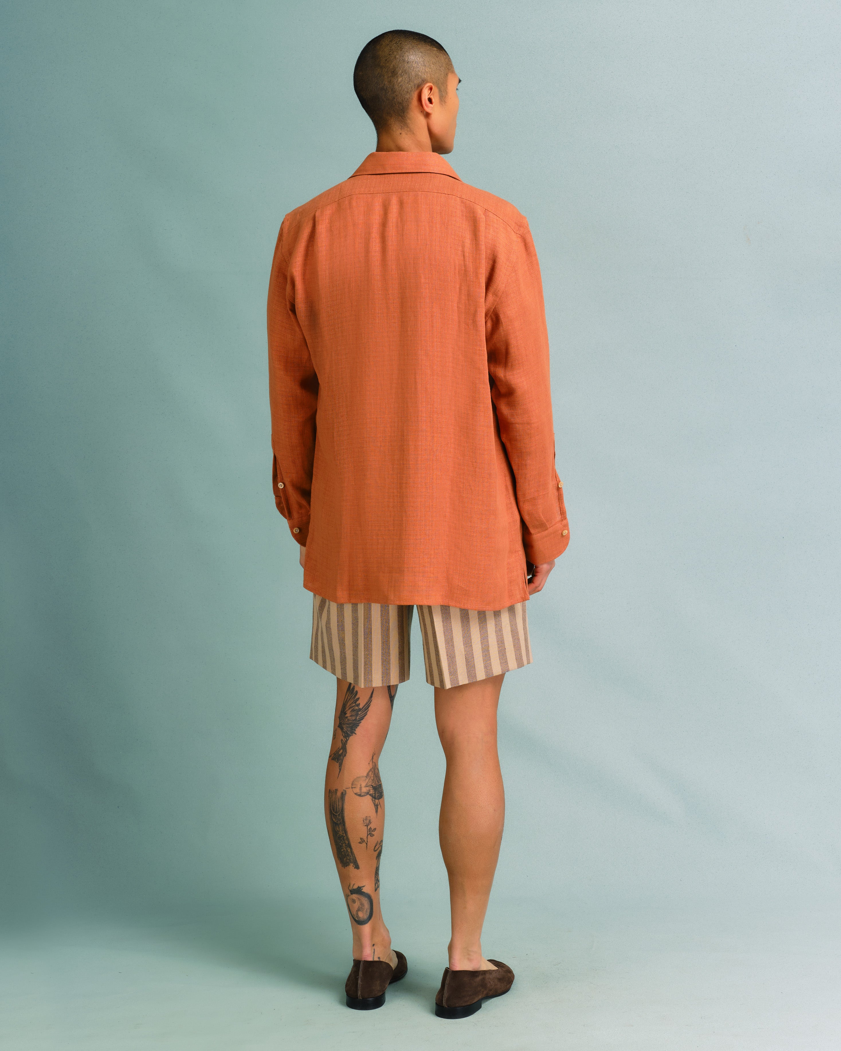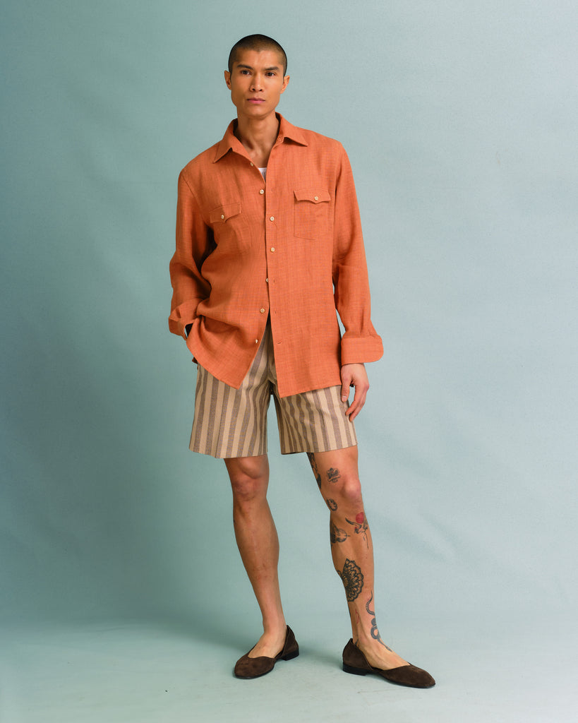 We designed our over-shirts as the ideal weekend layering piece • easy to style over a roll-neck or knitted T-shirt and a pair of our Hollywood or House trousers. With Cuban collars, delicate topstitching and a straight fit through the side seams, they're both elegant and easy-wearing.