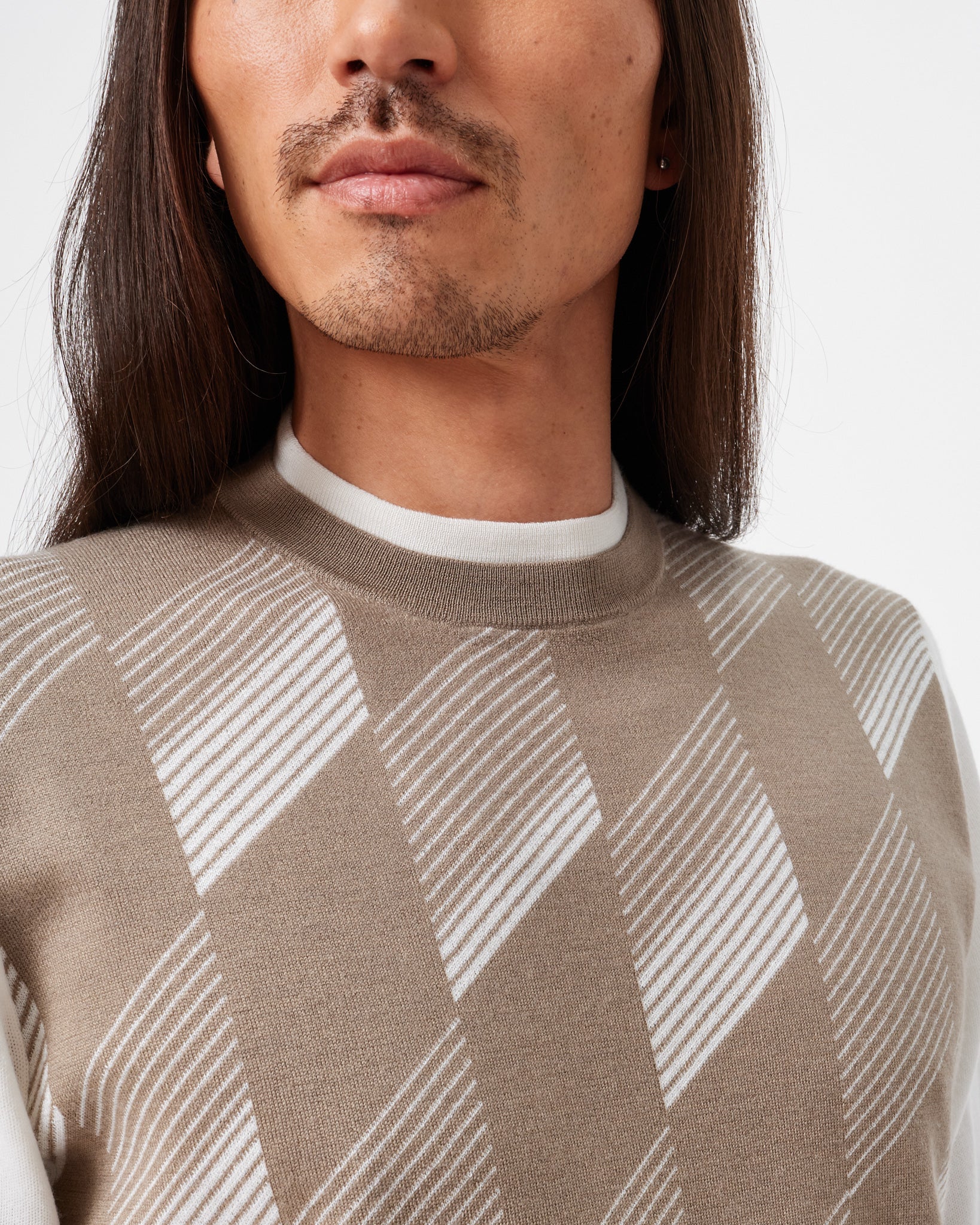 Beige and Cream Geometric Crew Neck