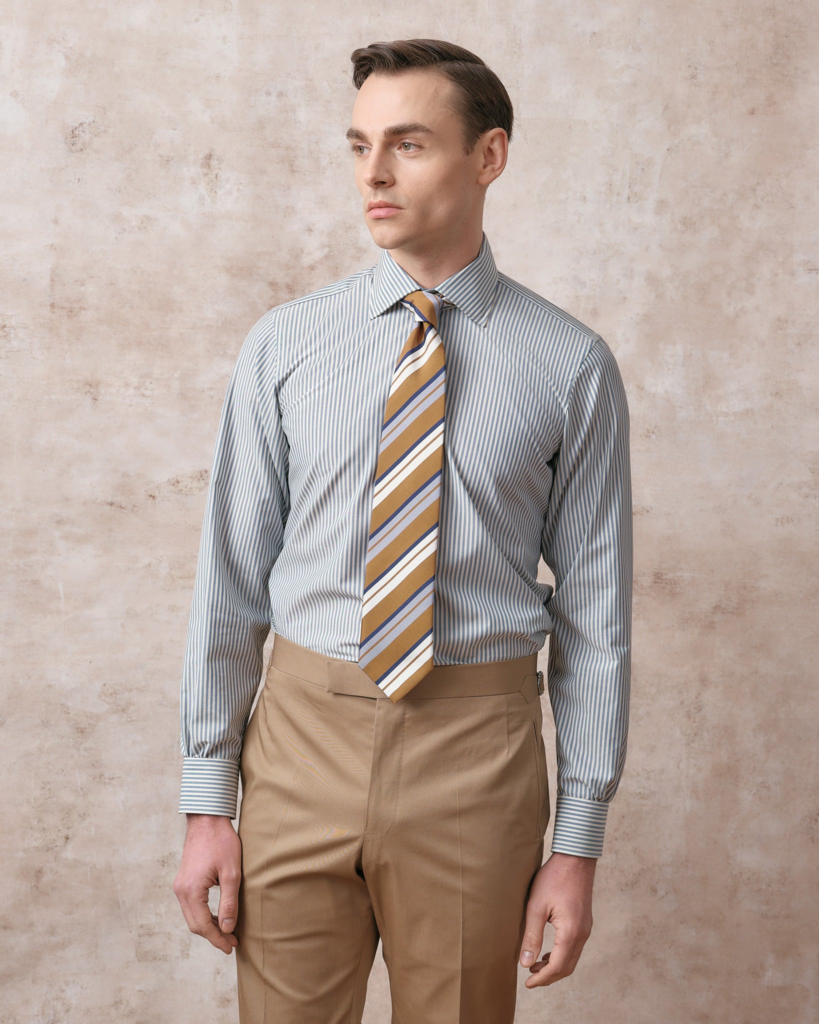 Understated dressers will most likely gravitate towards our versatile Contemporary Trousers, which are cut with flat fronts and a subtle taper through the legs – neither too wide, nor too slim. Trousers like these will take you anywhere in fine style, and can easily be paired with suit jackets or sports jackets alike.